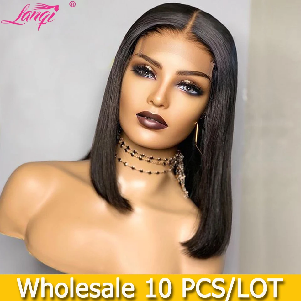 10 шт.лот оптовая продажа кости прямые синтетические волосы на кружеве парик бразильский короткий боб парики фронта шнурка человеческих волос парики для женщин 4x4 закрытие парик