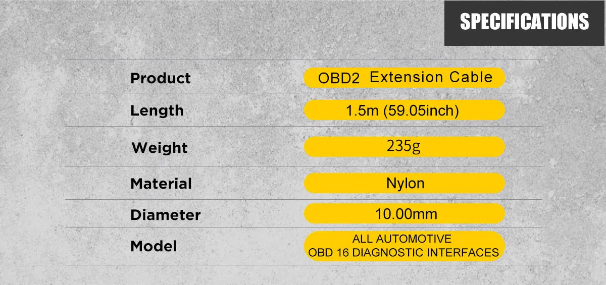 Item NameCar OBDII Extension Cable 16 Pin Male To Female OBD2 Connector