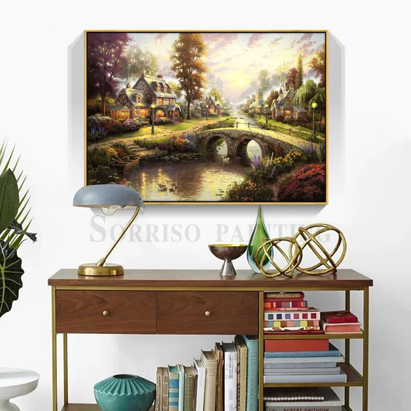 Европейский ретро пасторальный пейзаж, холст, картина, коридор, настенное искусство, домашний коридор, Декор, плакаты и принты для гостиной