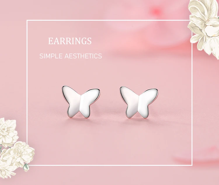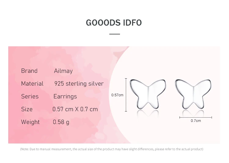 Ailmay насекомых Высокое качество модные 925 стерлингового серебра гладкая поверхность серьги бабочки для девочек, не вызывает аллергии, хорошее ювелирное изделие