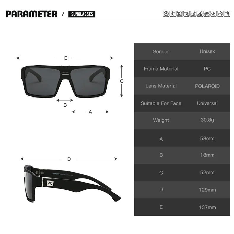 Солнцезащитные очки DUBERY Мужские квадратные UV400, поляризационные брендовые цветные солнечные очки для вождения