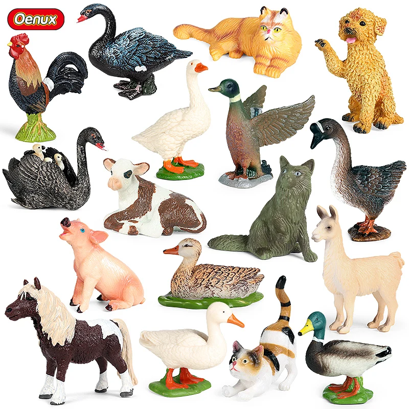 Экшн-фигурки домашних животных Oenux, гусиная утка, курица, свинья, корова, кошка, собака, лошадь, овечка, фигурки из ПВХ, миниатюрная развивающая игрушка для детей