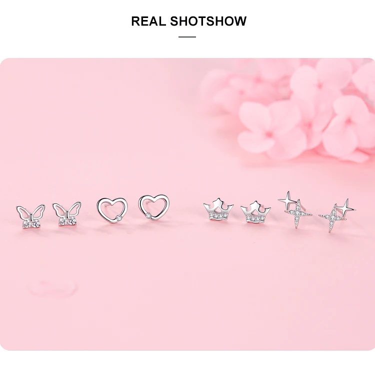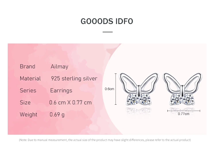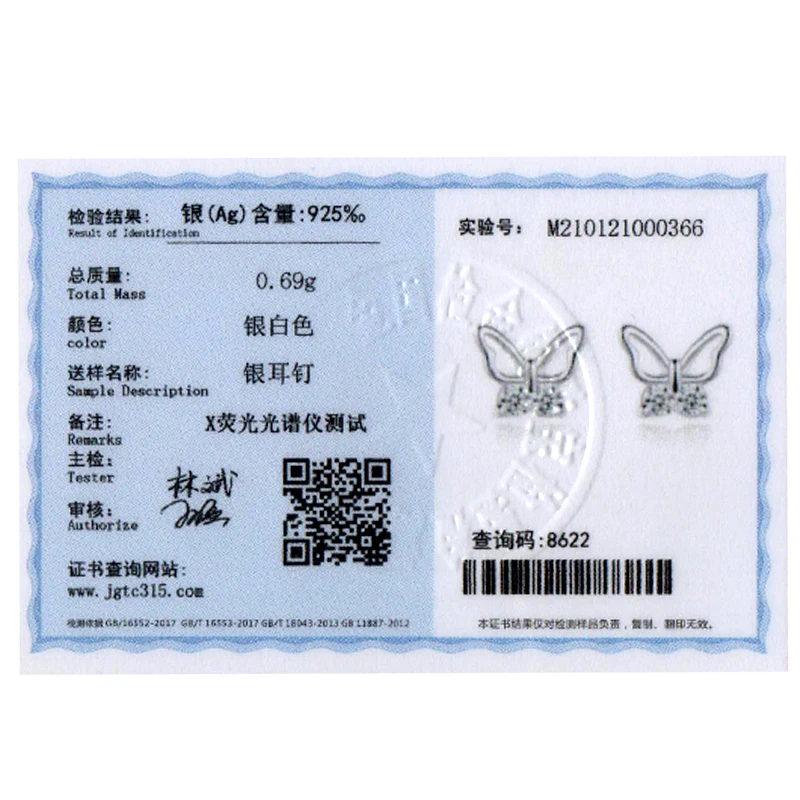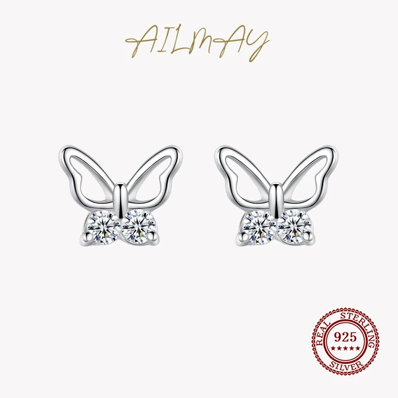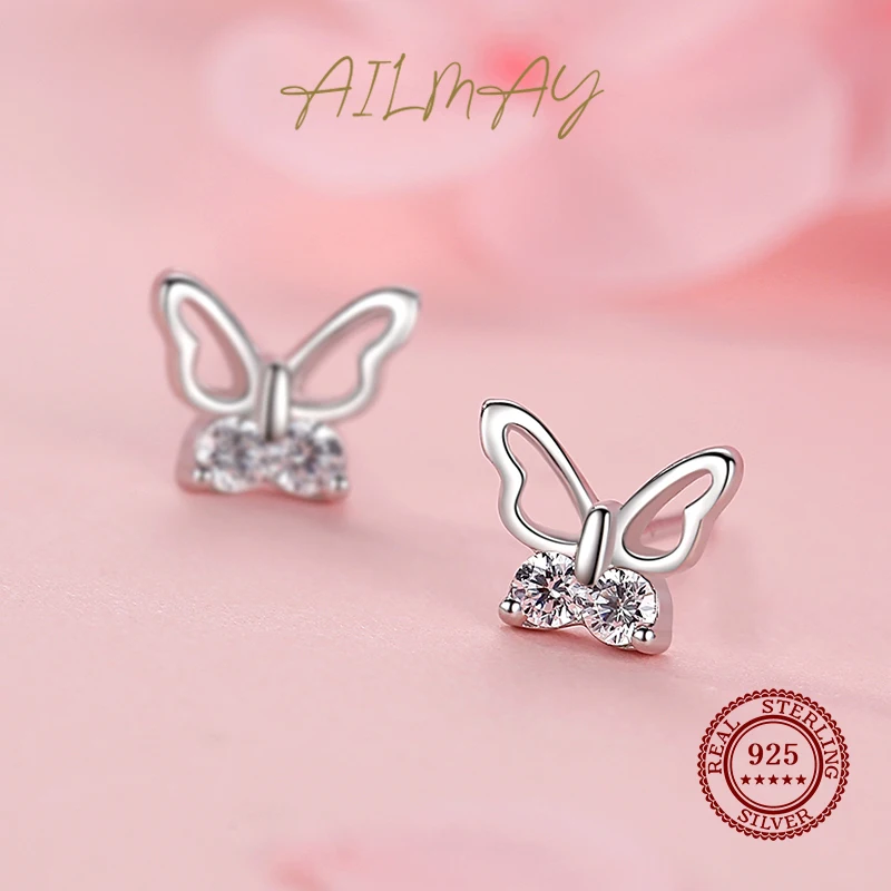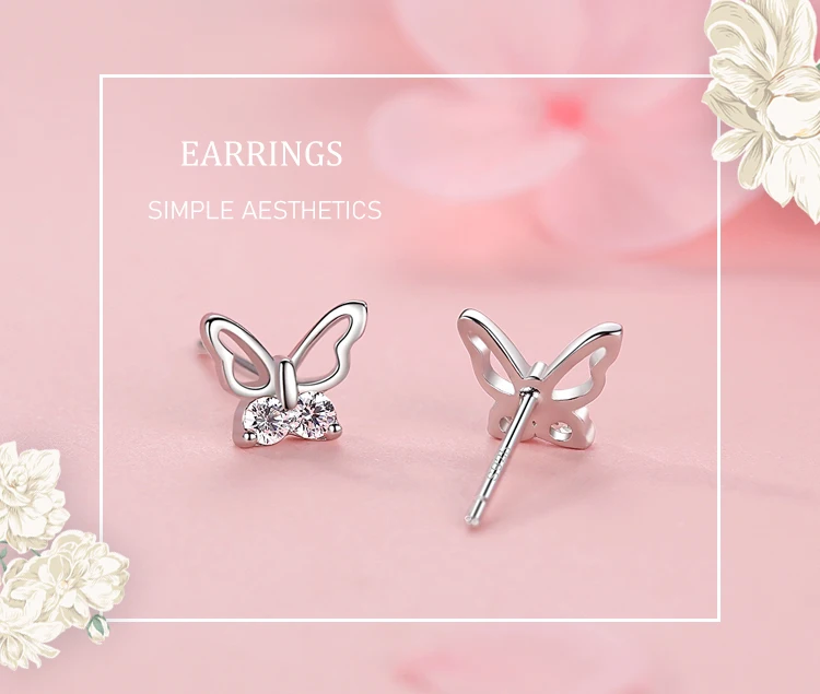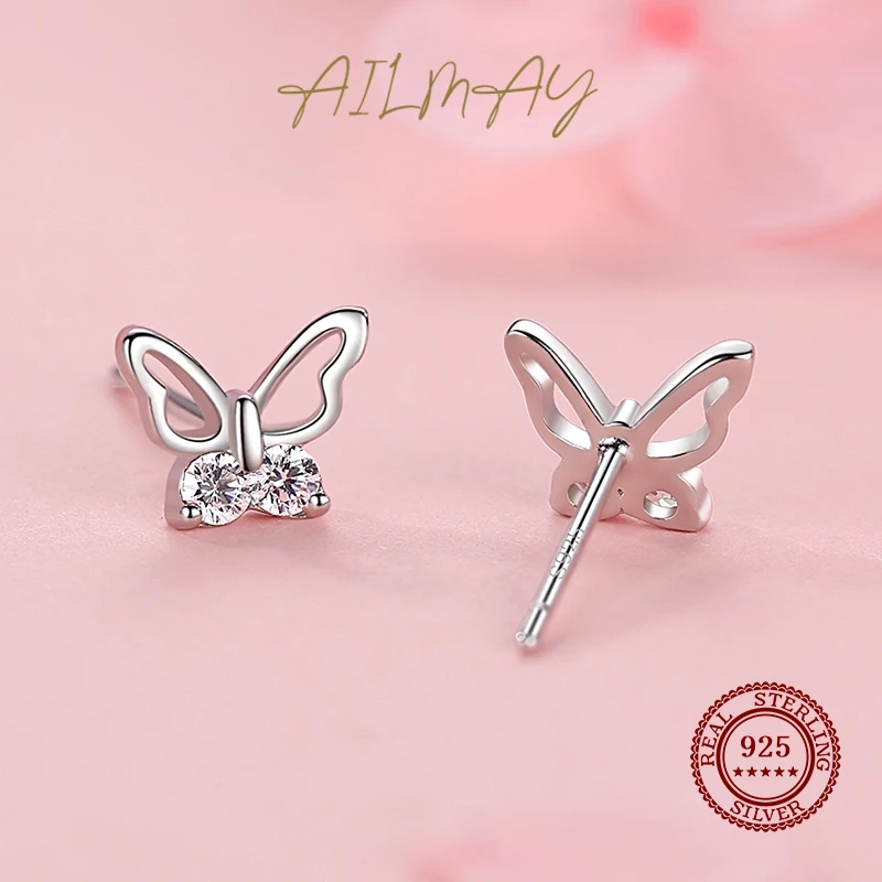 Женские серьги-гвоздики из серебра 100% пробы с бабочкой
