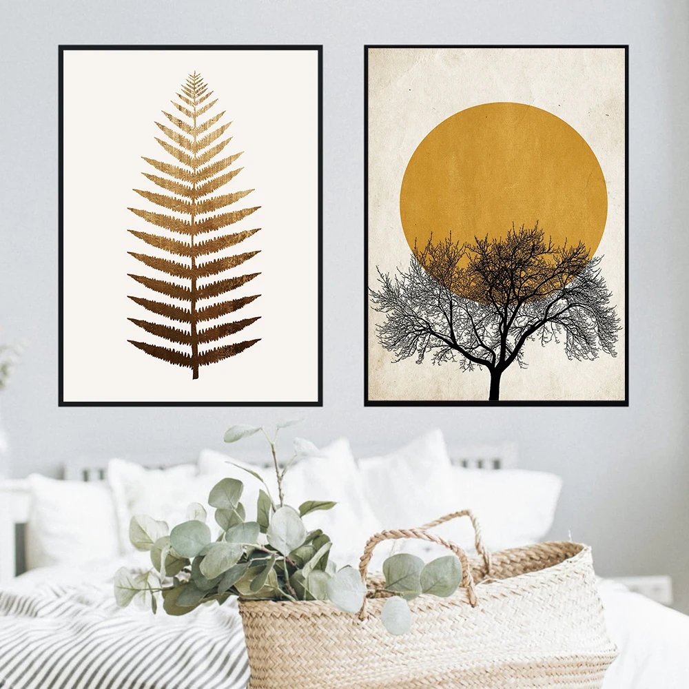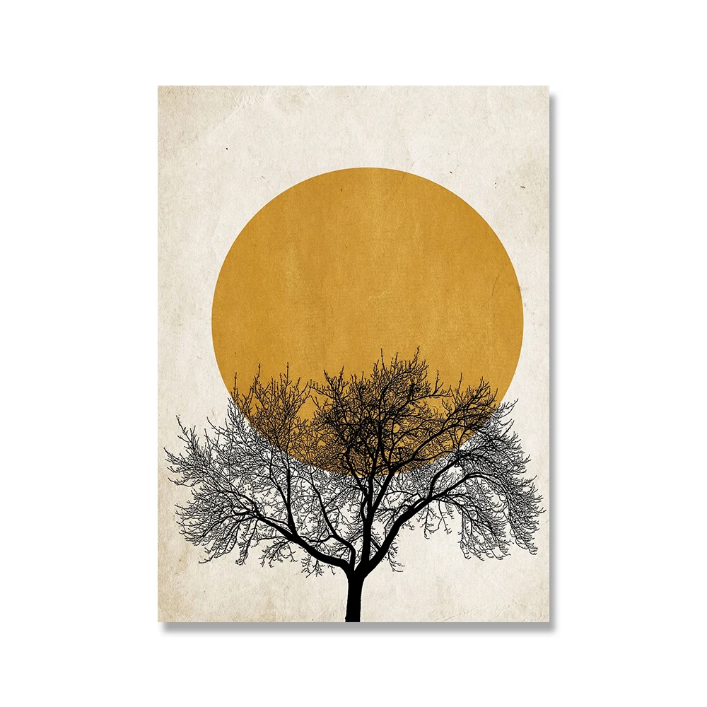 Абстрактный постер с изображением утреннего солнца и дерева, искусс...