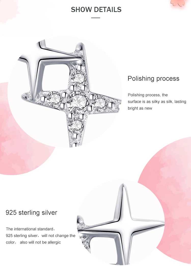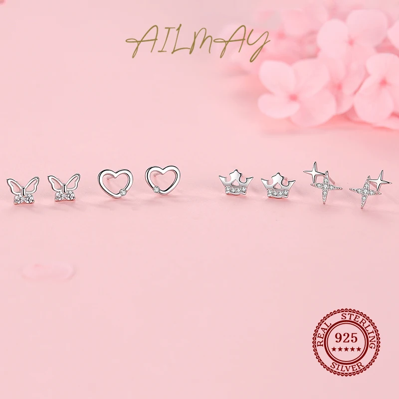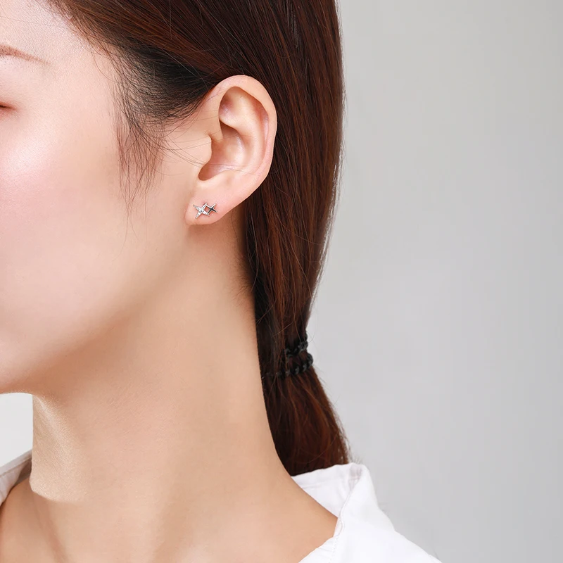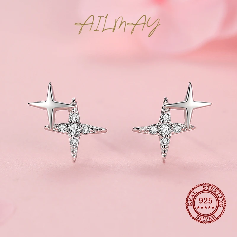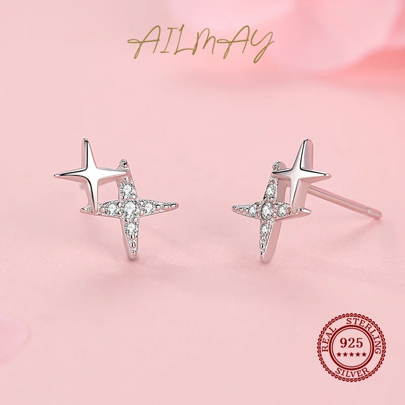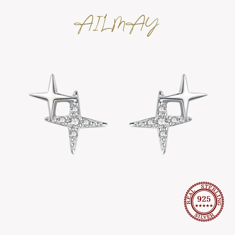 Ailmay Модные 925 стерлингового серебра браслеты с подвесками, сверкающий Цирконий, с принтом маленькая звезда, серьги для женщин, девушек, вечерние аксессуары для ювелирных изделий