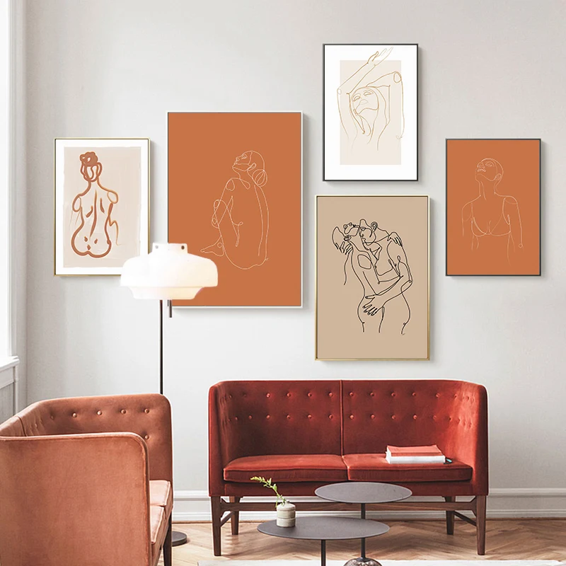 Абстрактная Геометрическая девушка линия плакат холст живопись пара для гостиной дома Куадрос Декор настенное искусство нордический минималистичный рисунок