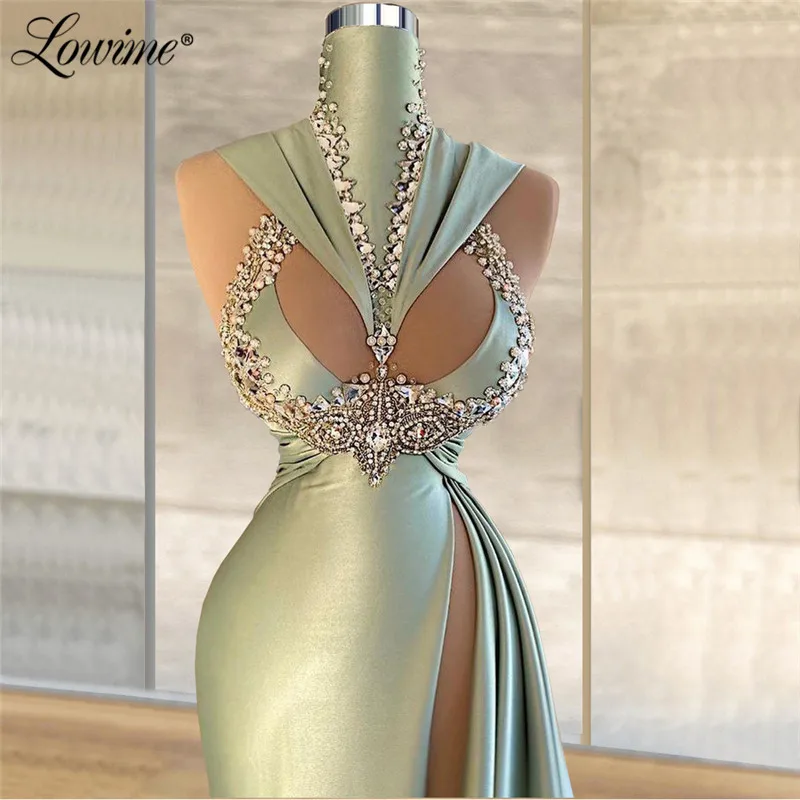 Lowime Кристаллы Русалка Длинные вечерние платья 2021 по индивидуальному заказу Robes De Soiree Longue вечерние Соблазнительные ажурные платья для выпускного вечера; Vestidos