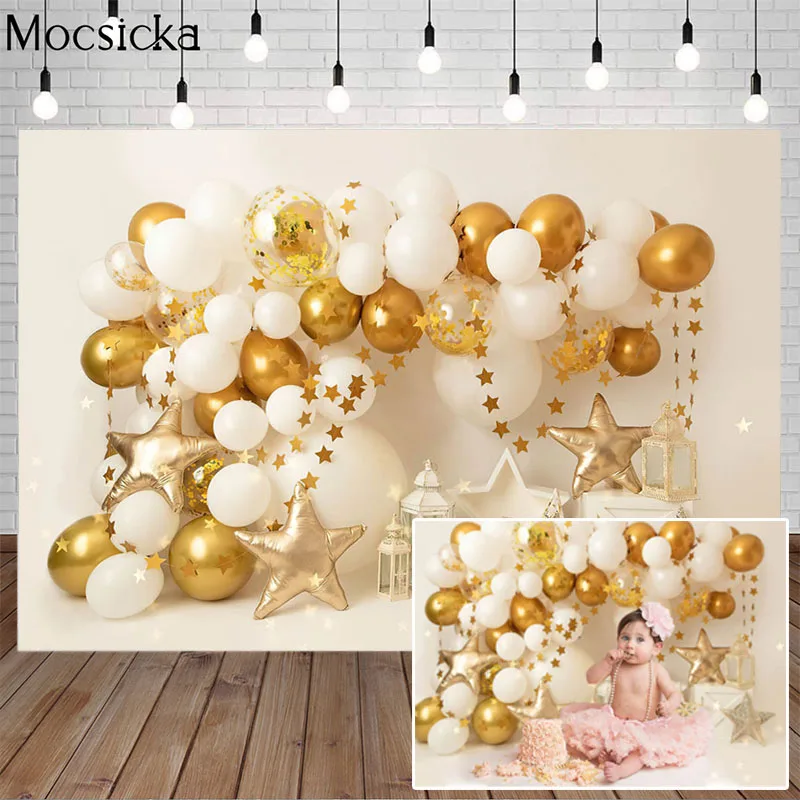 Фон для фотосъемки новорожденных с разноцветными воздушными Шарами на день рождения для мальчиков и девочек