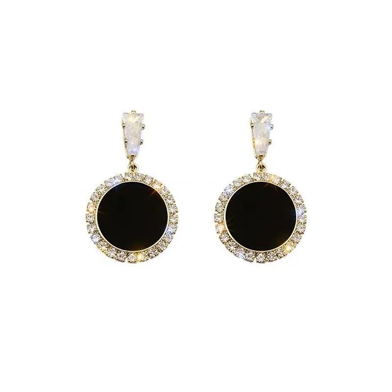 Круглые серьги Стразы 2021 новые черные модные корейские личные тем...