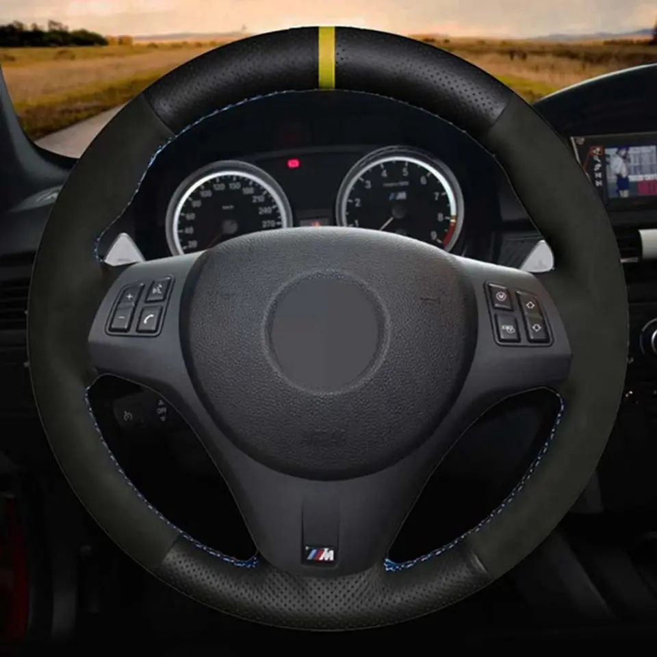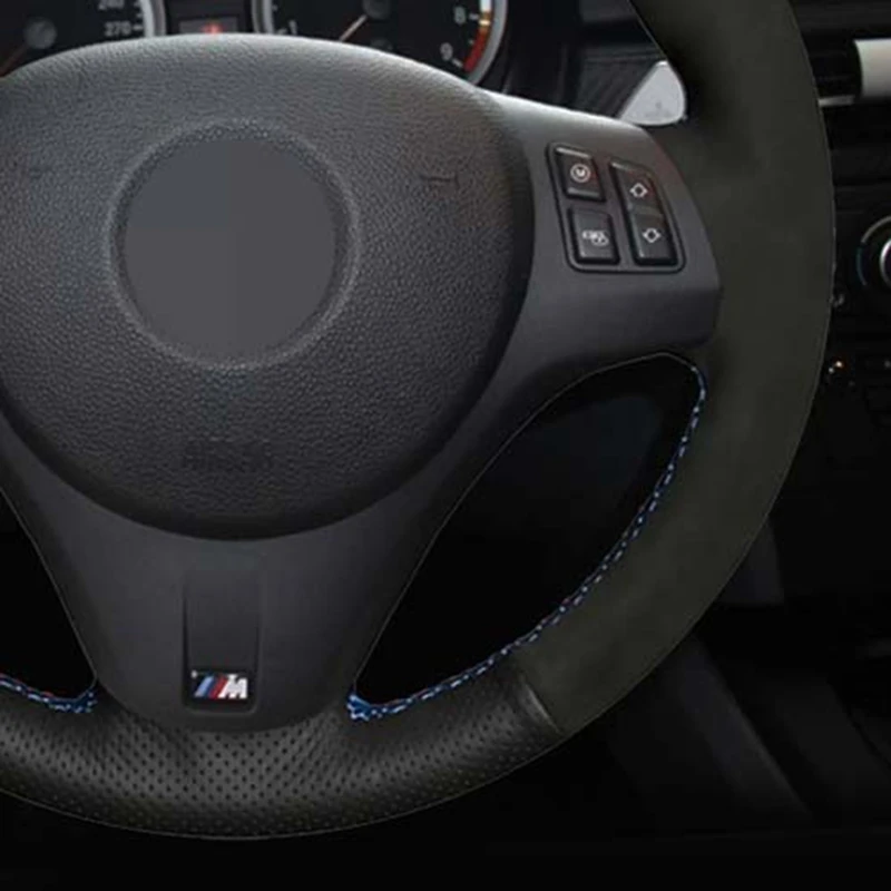 Чехлы рулевого колеса автомобиля мягкая черная замша, натуральная кожа для BMW M Sport M3 E90 E91 E92 E93 E87 E81 E82 E88