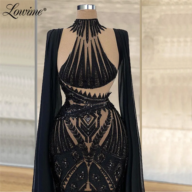 Женское вечернее платье Lowime, черное платье с длинным рукавом и бисером, просвечивающее кружево, платье для выпускного вечера