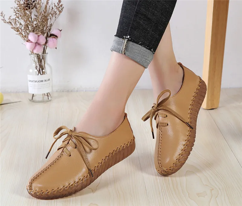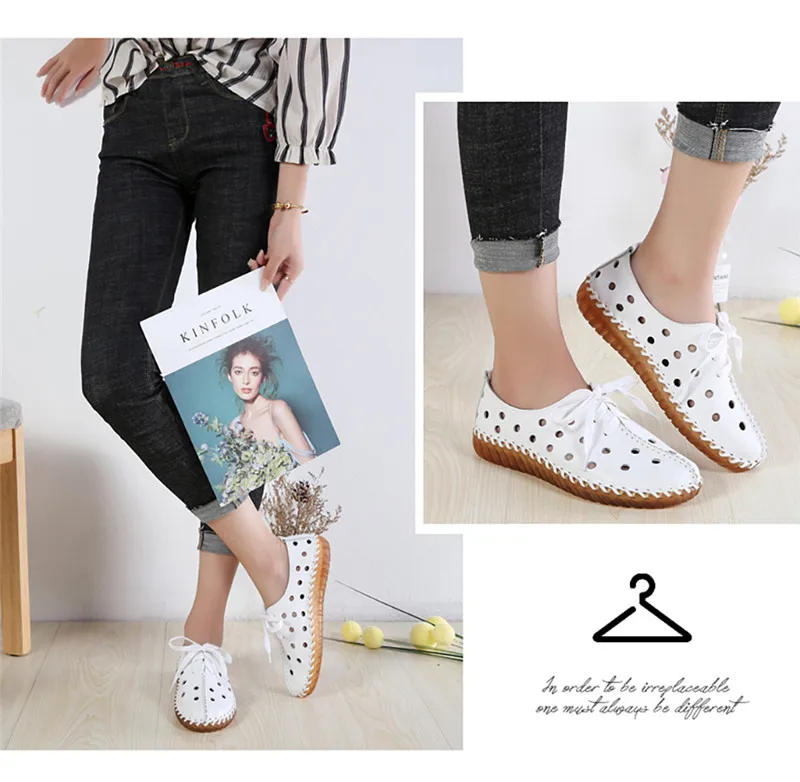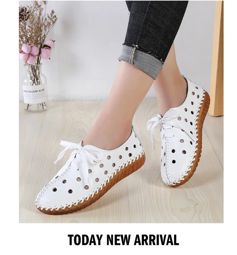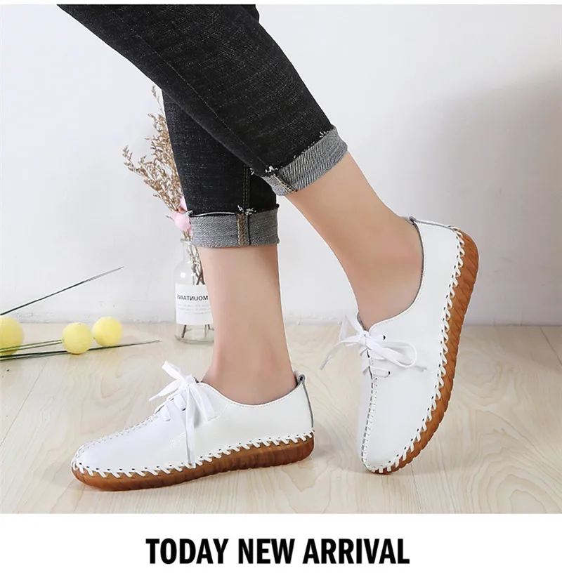 Туфли женские из натуральной кожи, на плоской подошве, белые