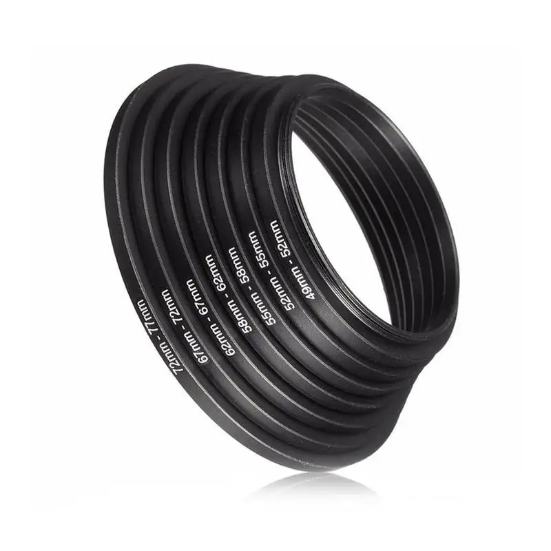 1. Специальный авиационный алюминиевый сплав, высокая прочность, ударопрочность, скручивание и давление. Обработка.2. Обработка поверхности: пескоструйная машина с высокой сеткой и качественный цвет, чистый матовый черный или серебристый. Сверхнизкий уровень химических остатков, крепится к твердому телу!ПосылкаПовышающее кольцо 49 мм-52 мм x 1Повышающее кольцо 52 мм-55 мм x 1Повышающее кольцо 55 мм-58 мм x 158 мм-62 мм повышающее кольцо x 162 мм-67 мм повышающее кольцо x 1Повышающее кольцо 67 мм-72 мм x 172 мм-77 мм повышающее кольцо x 1Увеличивайте и уменьшайте кольца, чтобы сделать лучшие снимкиЧто такое повышающее кольцоПовышающие кольца, также известные как переходные кольца, позволяют использовать фильтры и аксессуары, которые не такого размера, как Объективы вашей камеры. Объективы и фильтры бывают разных типов и размеров, и, к сожалению, они не всегда подходят друг к другу. К счастью, есть пошаговый или понижающий фильтр для любой потребности.Как работают повышающие кольцаПовышающие кольца позволяют установить фильтр большего диаметра или аксессуар на объектив меньшего размера. Увеличивающие кольца прикручиваются к резьбе линз и имеют большую резьбу, с помощью которой вы можете прикрепить другие элементы, Входящие в комплект поставки больших увеличивающих колец.Как работают Понижающие кольцаПонижающие кольца работают точно так же, но вместо этого предоставляют способ прикрепить небольшие аксессуары и фильтры к более крупным объективам.Важно отметить, что, как правило, чем дальше от объектива вы размещаете фильтр, тем хуже будет оптика. Всегда лучше всего найти самое тонкое переходное кольцо, которое вы можете найти, так как оно будет держать фильтр близко к объективу.