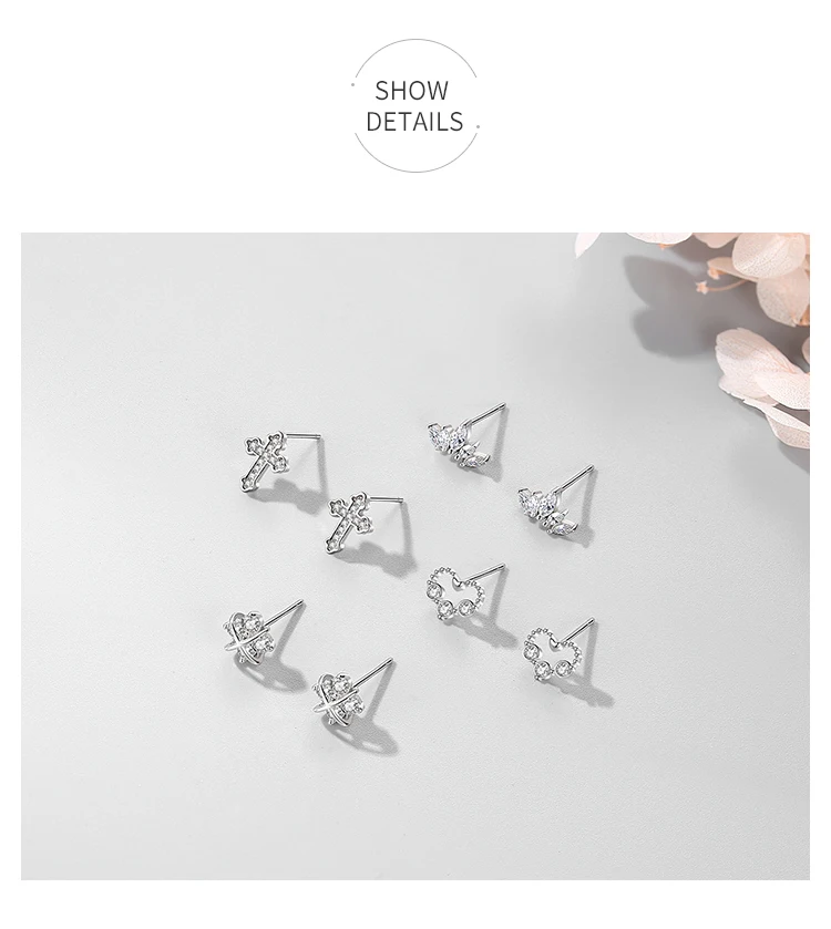 Серьги-гвоздики женские из серебра 925 пробы с цирконием