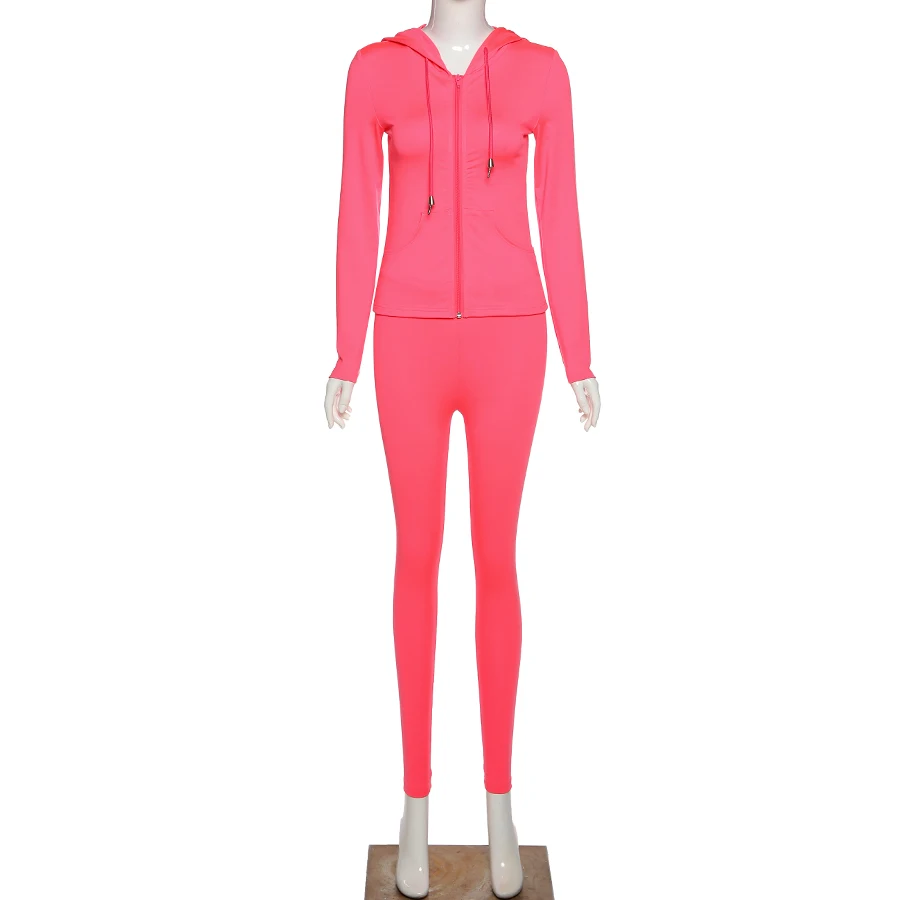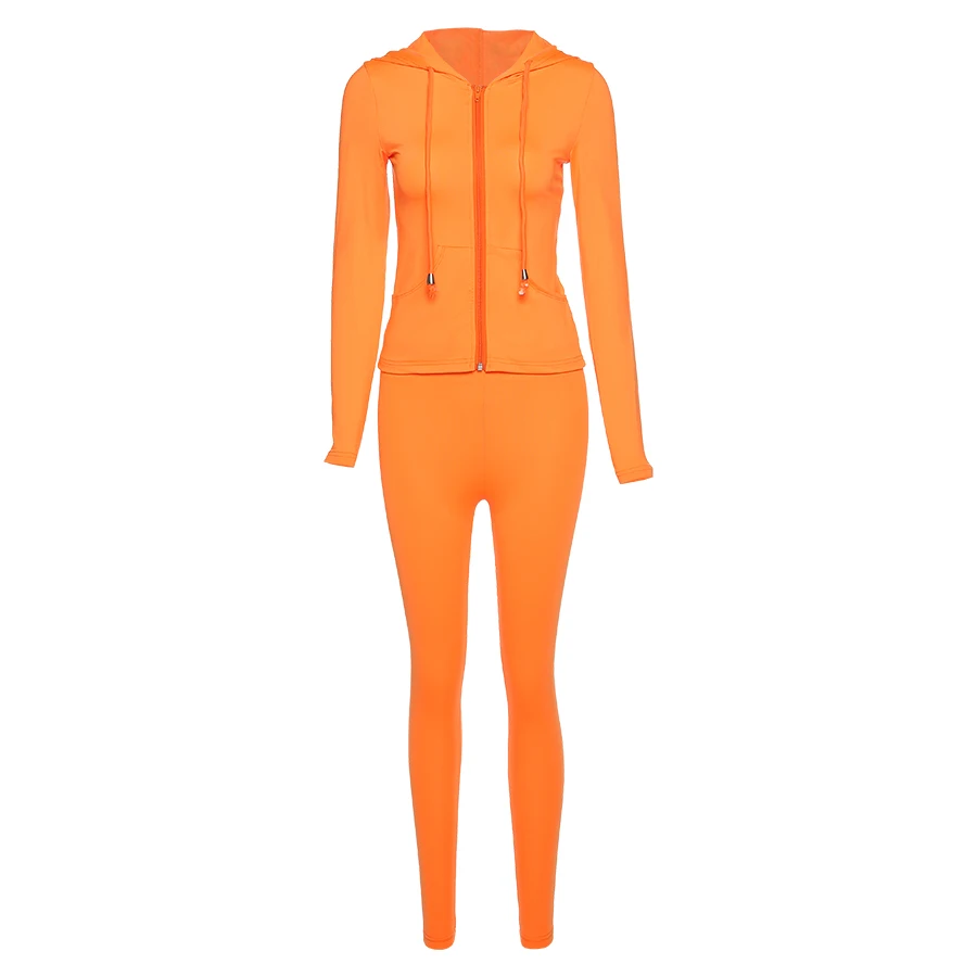 Осенний комплект из двух предметов Yiallen, женская спортивная куртка на молнии с капюшоном и карманами и леггинсы с длинным рукавом, подходящие комплекты, стрейчевый костюм для тренировок, 2021
