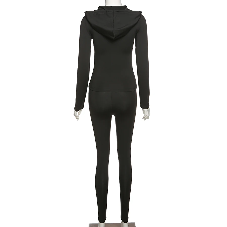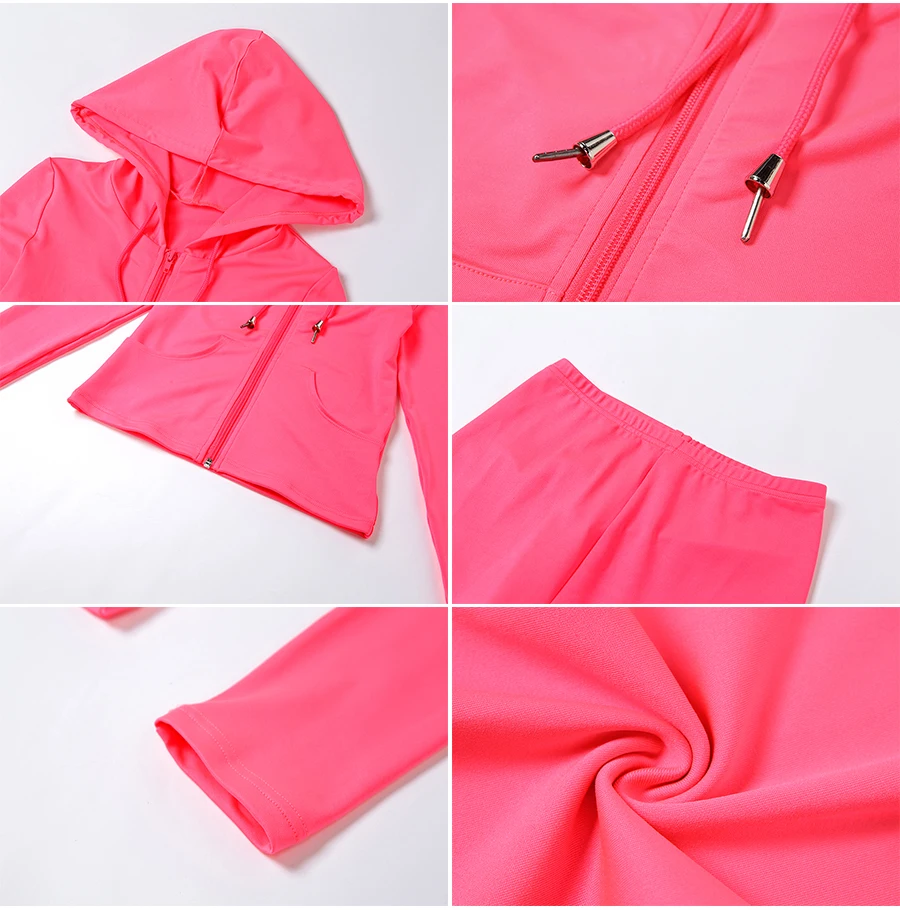 Женский спортивный костюм на молнии с длинным рукавом и капюшоном