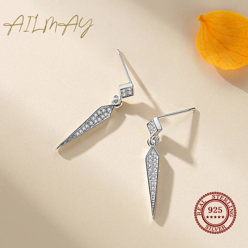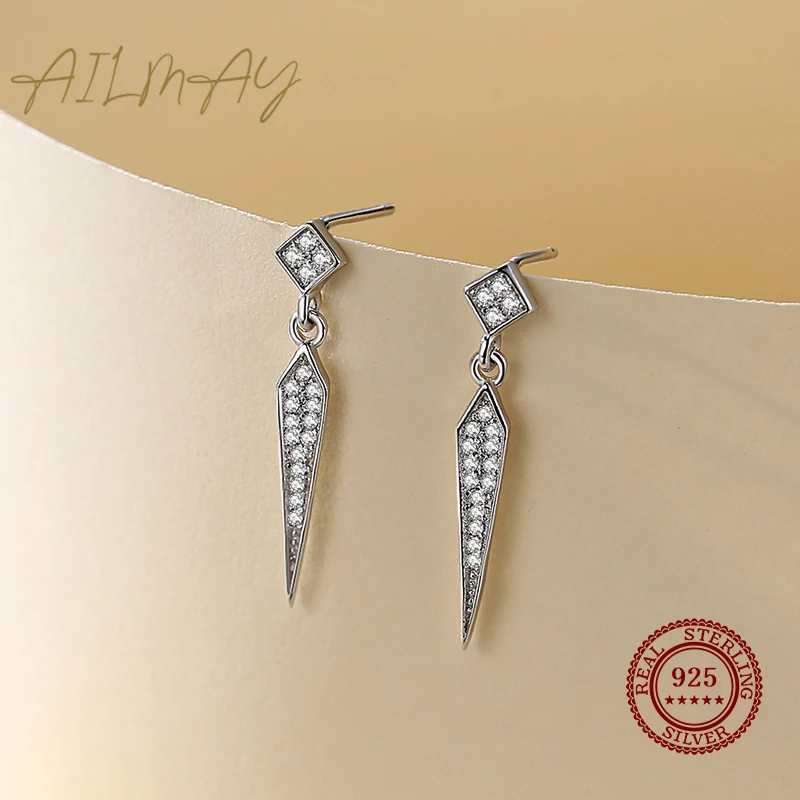 Ailmay 925 стерлингового серебра простые геометрические Форма серьги-гвоздики сверкающими камнями роскошные классические женские свадебные ювелирные изделия, ювелирные изделия