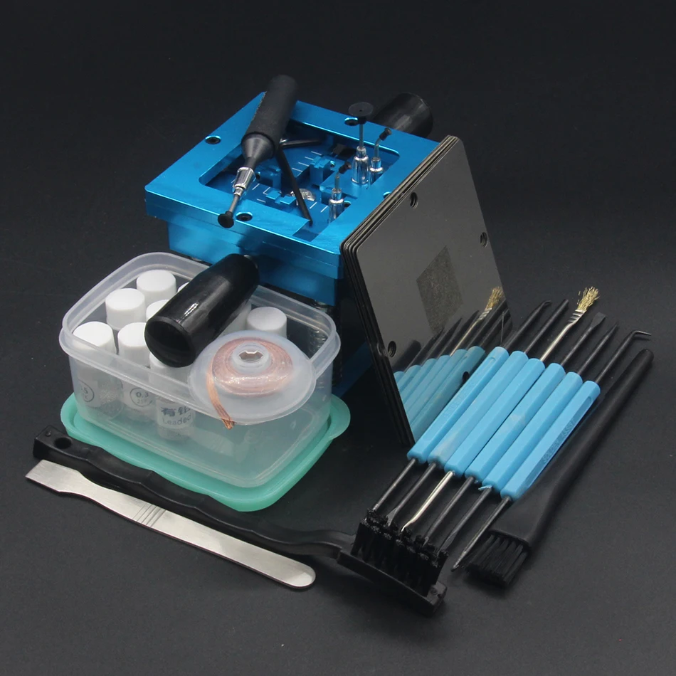 Синий BGA реболлинг набор 90*90 мм BGA станция реболлинга с ручкой подарок 10за штуку Бесплатная доставка Универсальные трафареты BGA с некоторыми аксессуарами