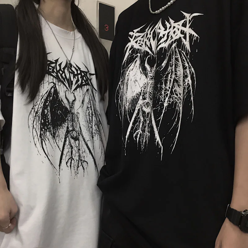 Футболка мужская Готическая в стиле Харадзюку, топ пары в стиле ретро, корейский стиль Гарри, черная готическая одежда с аниме принтом демона, панк, размера плюс
