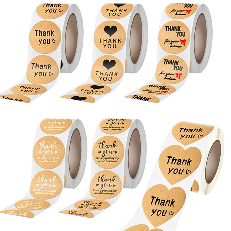 1 дюйм натуральная Крафтовая бумага Спасибо наклейки s печать Labes...