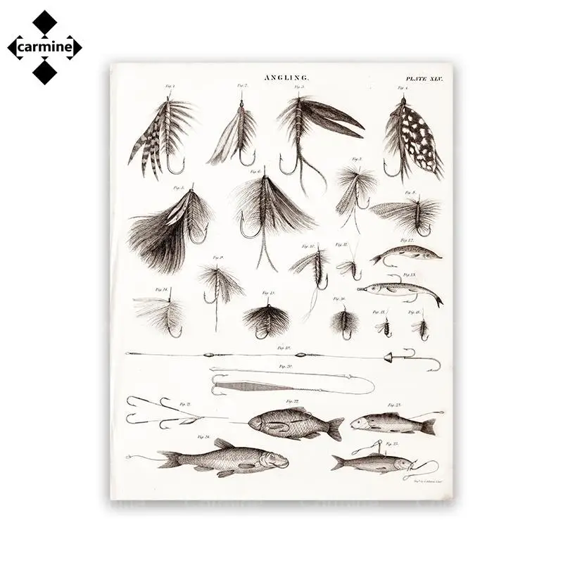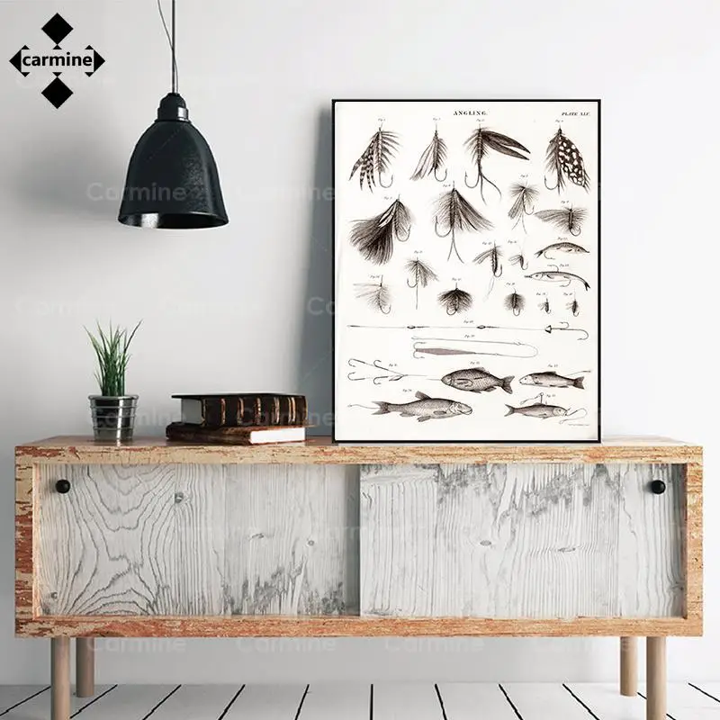 Плакат и печать для ловли нахлыстом, винтажная картина в стиле стимпанк, художественная живопись, античные приманки и крючки для ловли рыбы, настенное искусство для декора