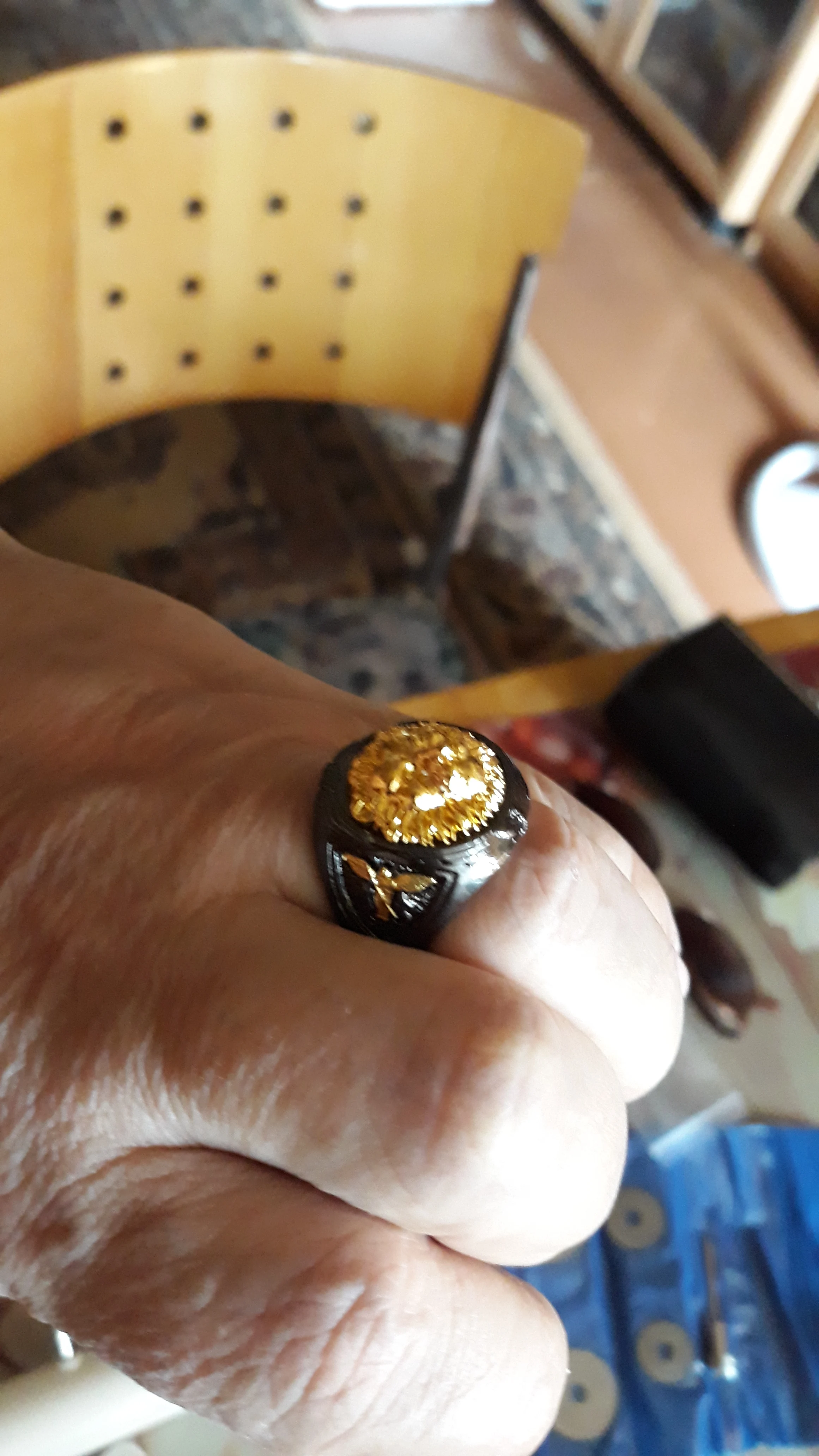 Кольцо мужское, с резьбой в виде золотого двуглавого орла