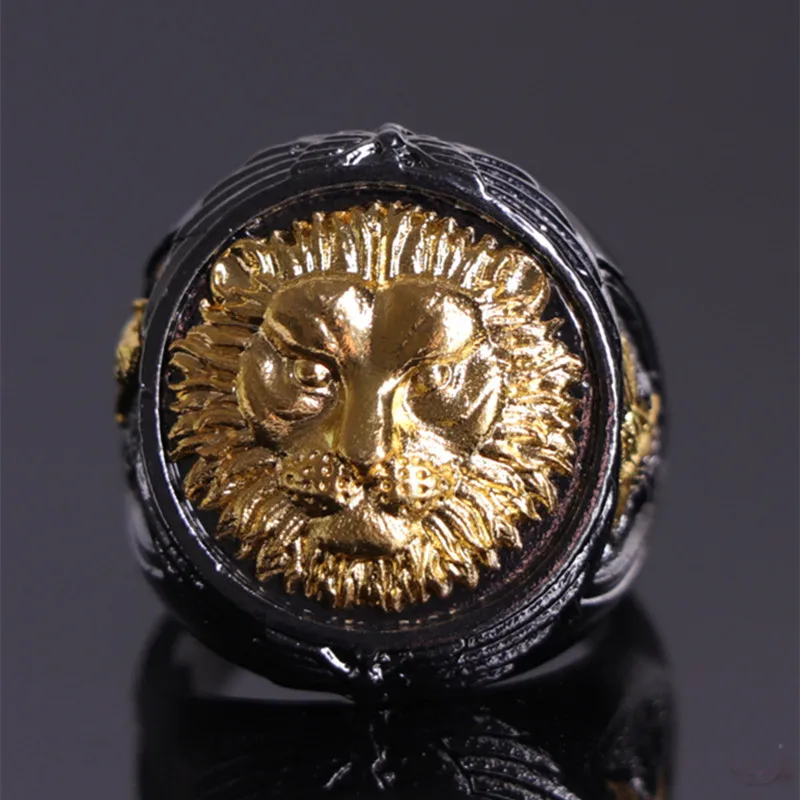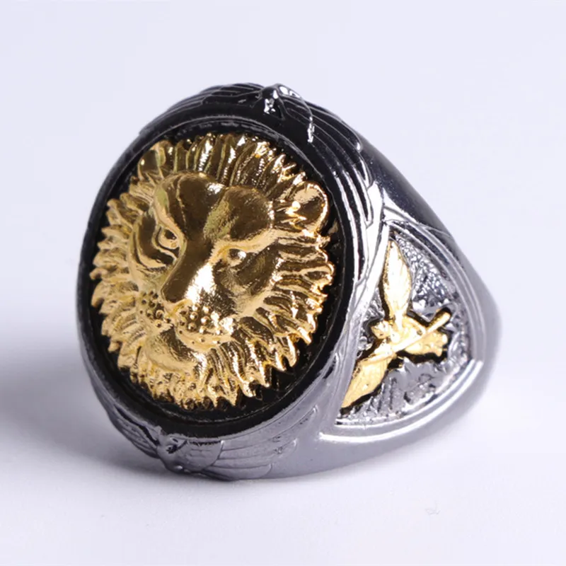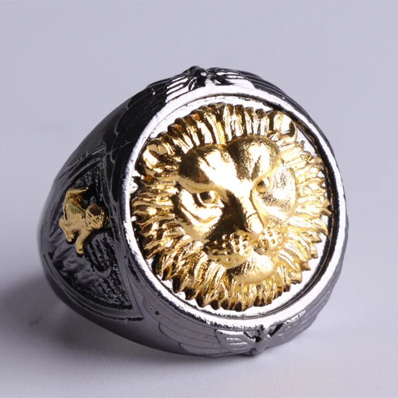 Винтажные стильные кольца со львом для мужчин, двухцветные Позолоче...