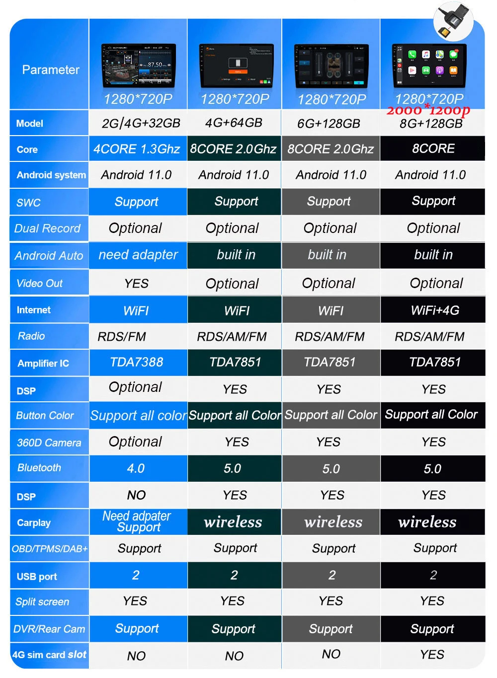 10,1 дюймов 2.5D емкостный Экран QLED (по желанию) + Quad /Octa Core 1,2/2,5 ГГц Процессор + 2GB (6 Гб опционально) флэш-память + 32 ГБ памяти (64/128 Гб опционально) + встроенный Wifi (4G сеть опционально) + gps-навигация (карта Бесплатная поддержка обновления) + управление рулевым колесом + зеркальная связь + Bluetooth + Встроенный микрофон + FM/AM + RDS (опционально) + Поддержка USB ADAS DVR Функция + Европейская DAB функция + 1080P Vedio Play + HD 1280*720 + контроль давления в шинах Система