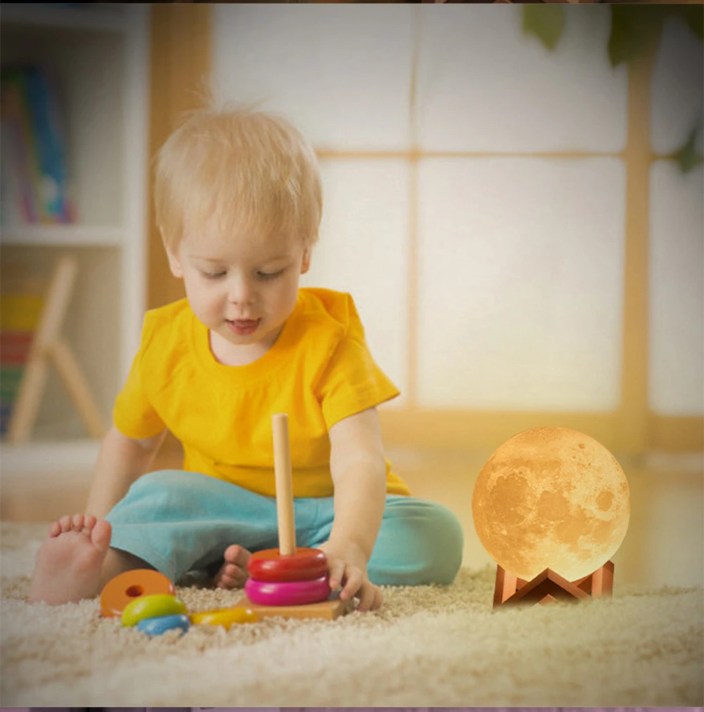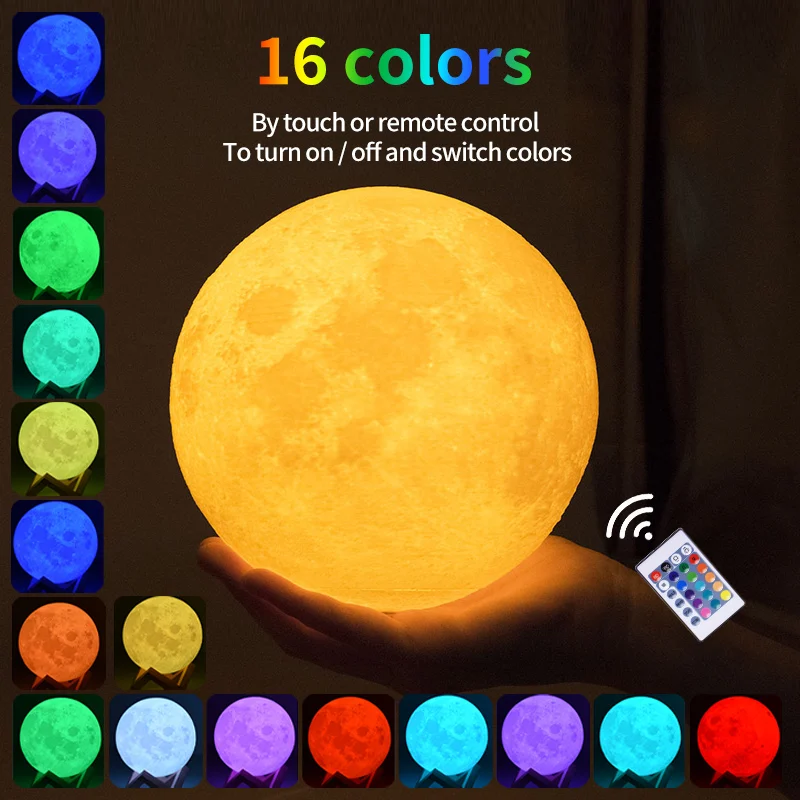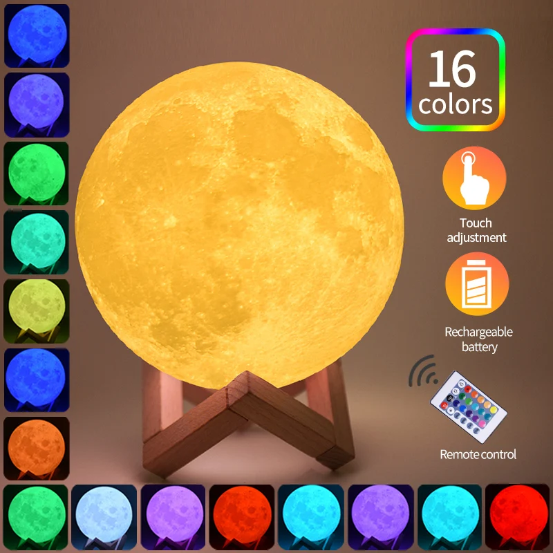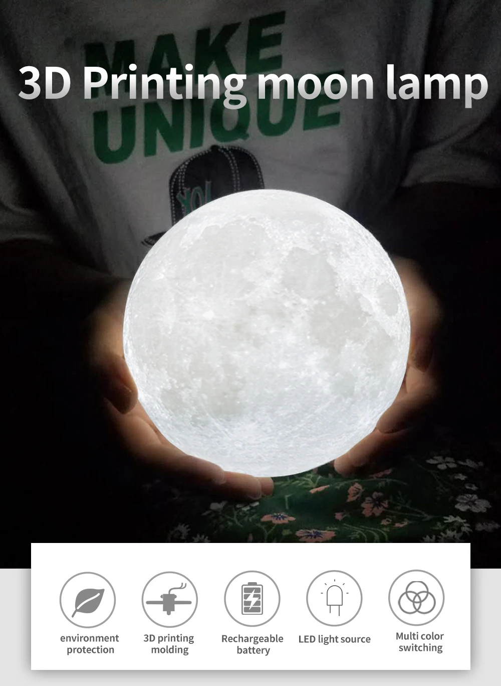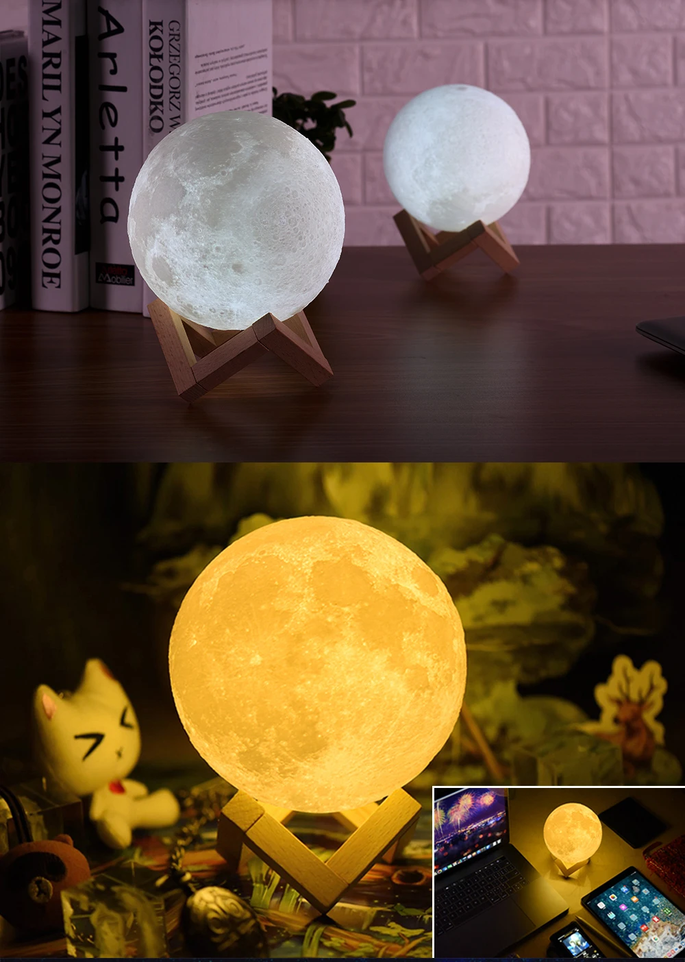 Ночсветильник в виде Луны с 3D рисунком, светодиодный светильник с аккумулятором, украшение для дома, креативный подарок для детей, Прямая поставка