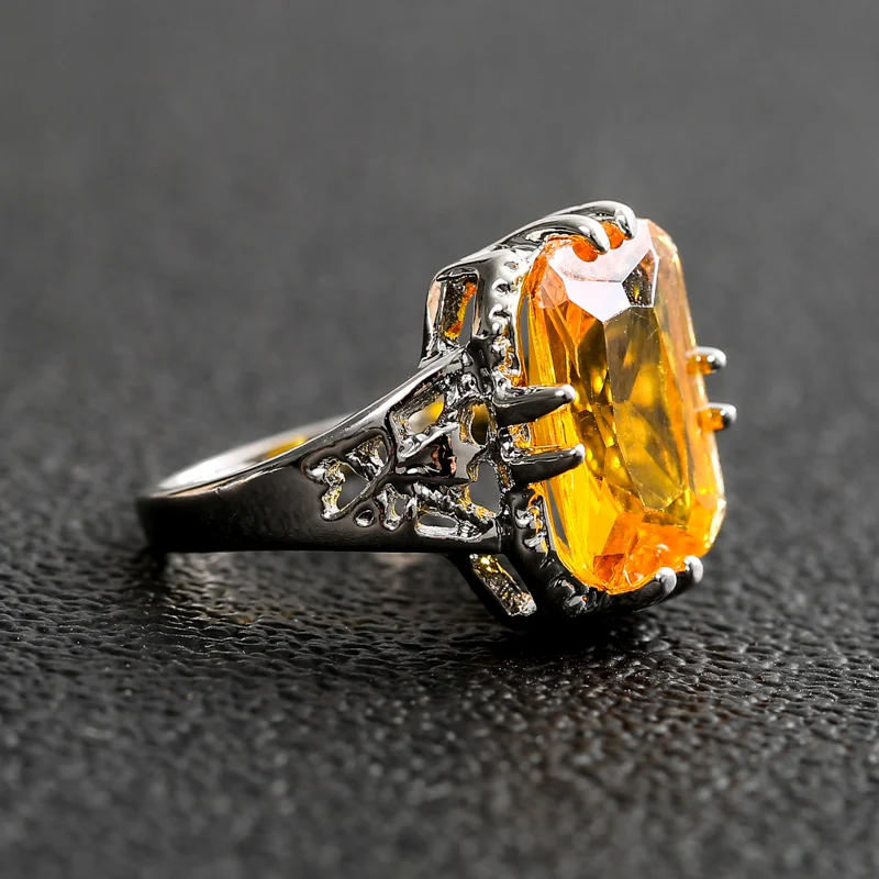 Изысканный Anitique Серебряный Цвет желтый камень прямоугольник большие кольца для мужчин и женщин в винтажном стиле циркон браслеты с подвесками обручальные кольца CZ