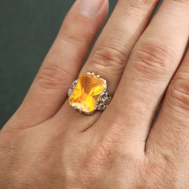 Винтажные кольца с цирконом MFY, с желтыми камнями, прямоугольные, ...