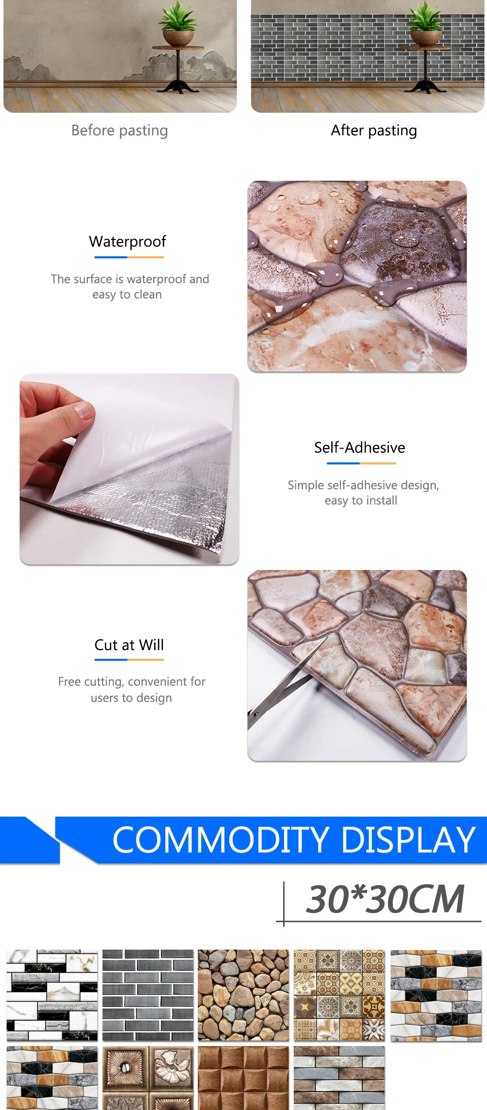 3D обои мраморная кирпичная кожура и самоклеющиеся наклейки на стен...