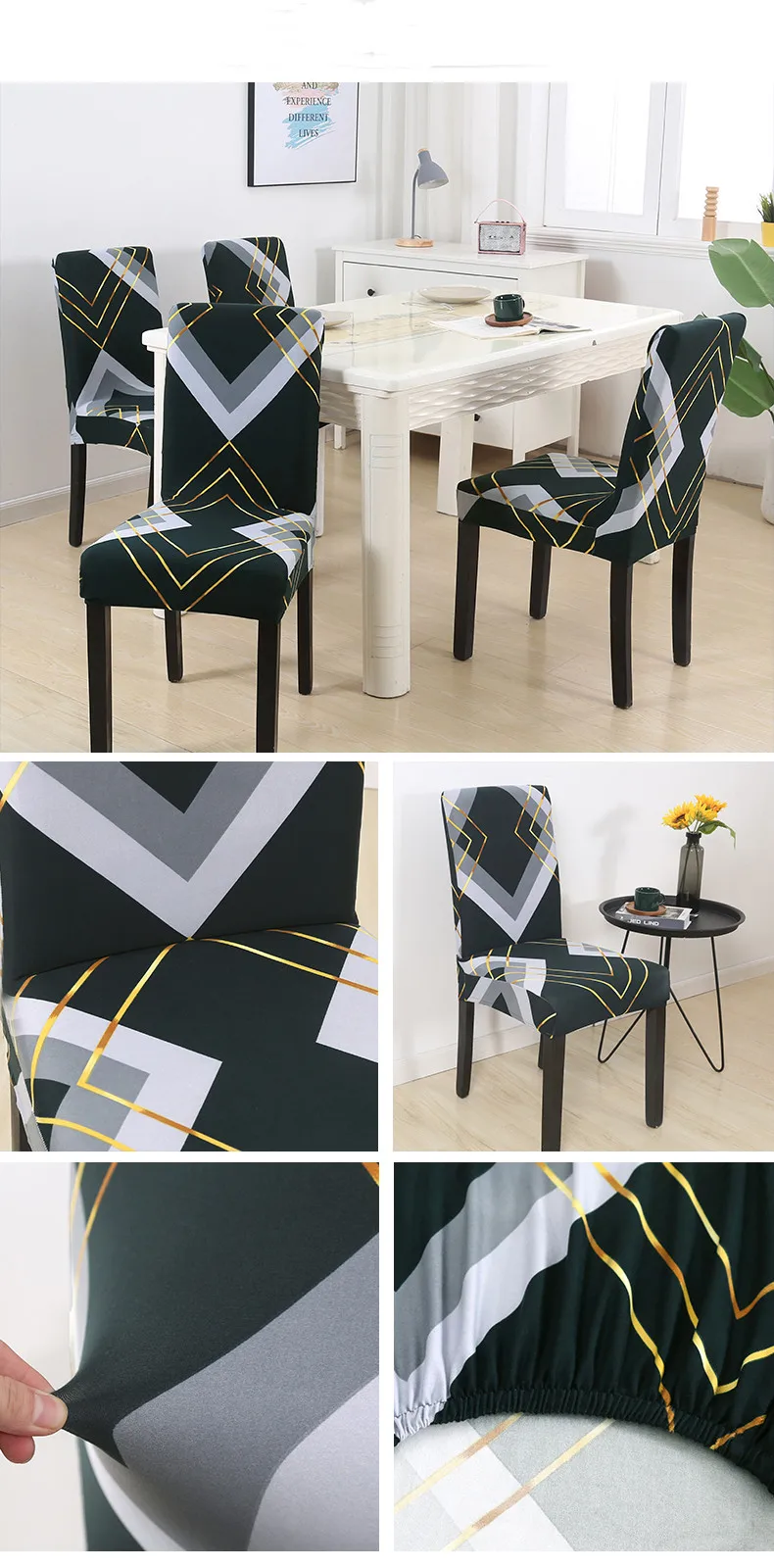 В виде геометрических фигур эластичные чехлы на кресла спандекс покрывало для стула для обеденного стола Кухня чехлы на кресла стрейч со спинкой чехол анти-грязный съемный