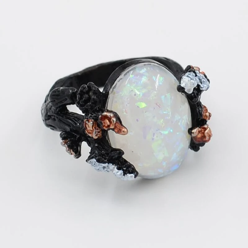 Кольцо Milangirl женское, с белым огненным опалом и Луной