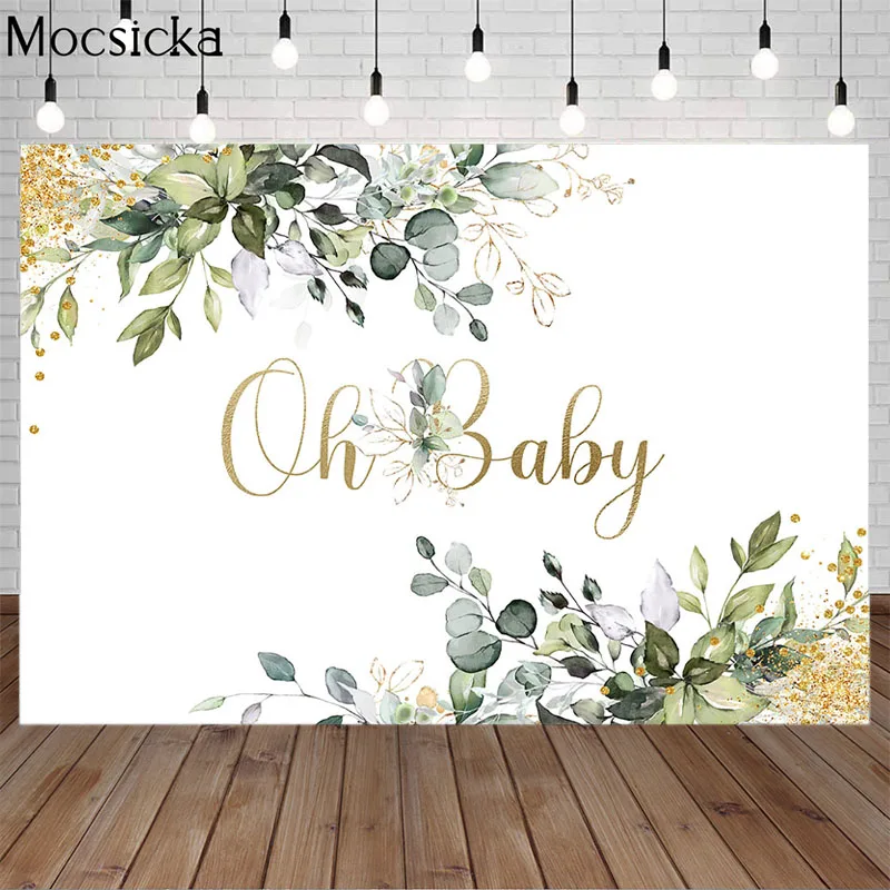 С надписью Oh Baby фон для фотографирования с изображением зеленых ...