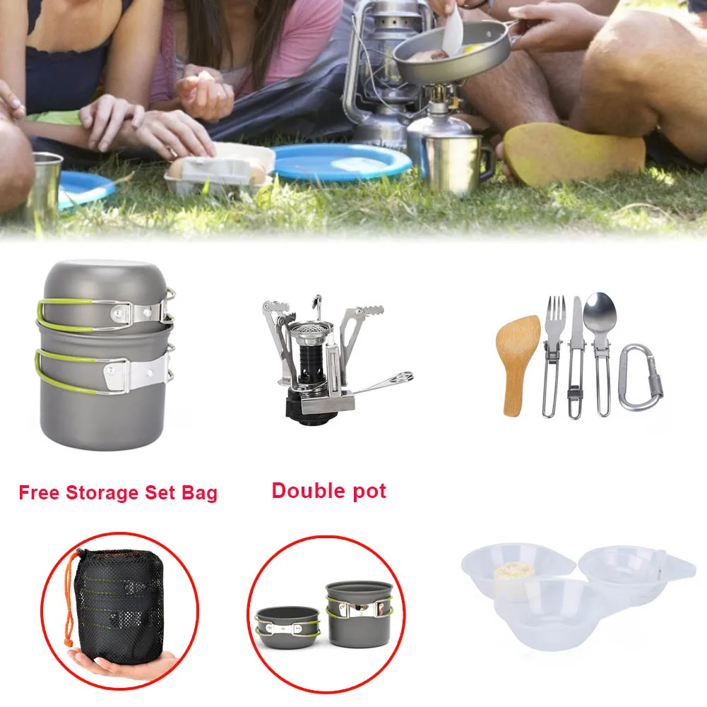 Портативная газовая посуда, кастрюли, печи для кемпинга, принадлежности для кемпинга, наборы кастрюль для 1-2 человек