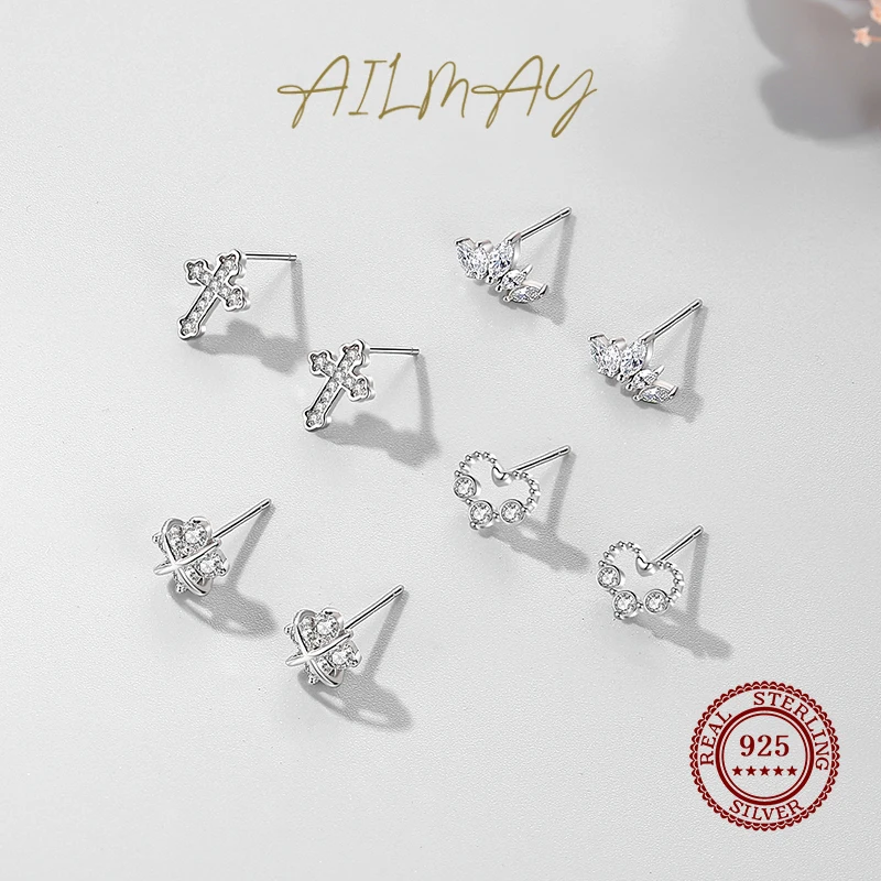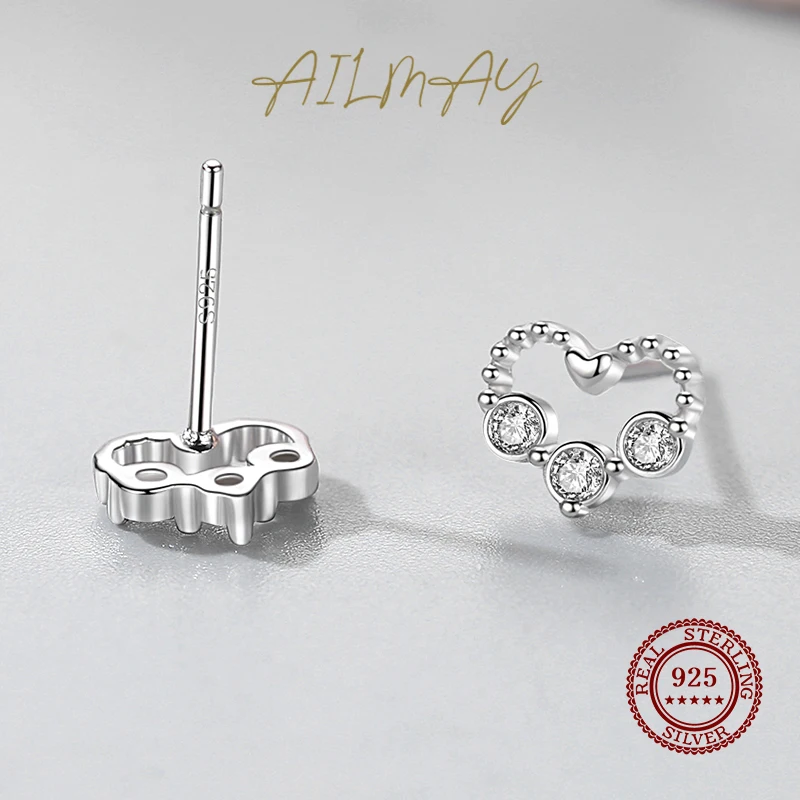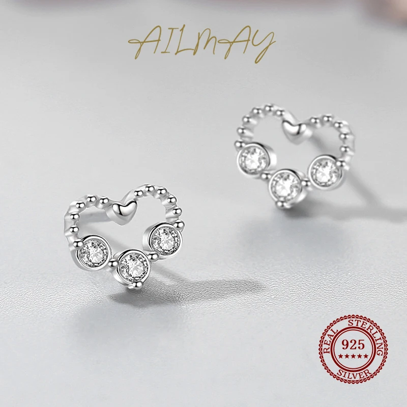 Ailmay натуральная 925 пробы серебро простые серьги в форме сердца, маленькие прекрасные серьги минимализм изысканные серьги-гвоздики ювелирное изделие Новый стиль