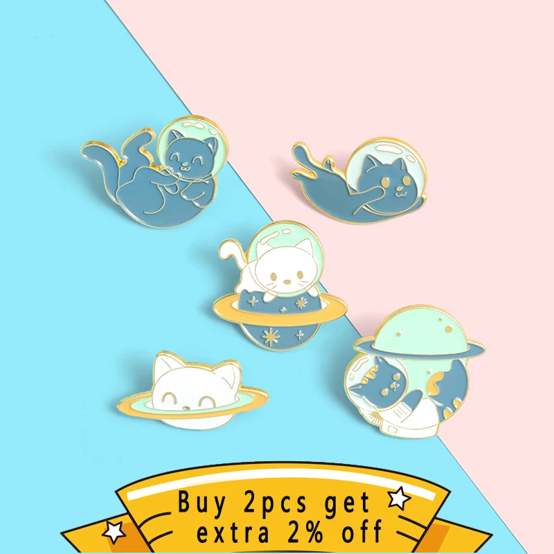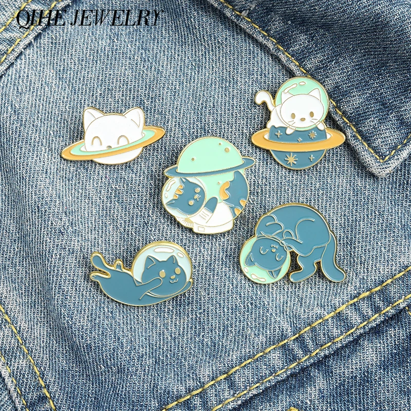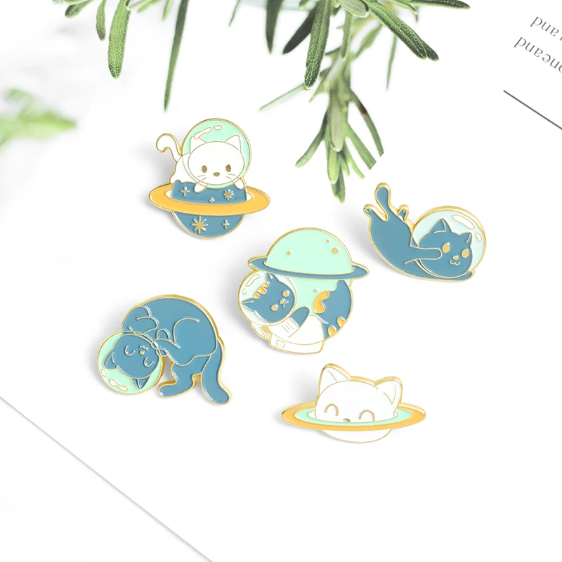 Эмалированные булавки в виде астронавта, кошки, космоса, Вселенной,...