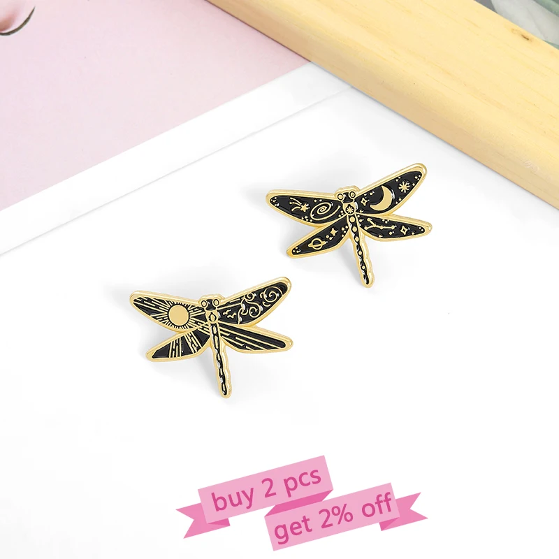 Солнце Луна Стрекоза эмалевые булавки на заказ день и ночь Броши с насекомыми рубашка Нагрудный значок Сумка Ювелирные изделия в стиле готик-панк подарок для друзей