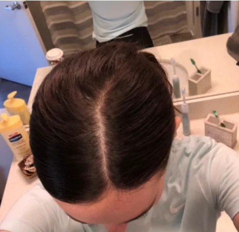 Pictured is the result in my part within a month. I am 23 and my hair was thinning on the crown so I ordered this in desperation and within a month my hair has grown about an inch and much thicker and fuller around the part and in the crown. The baby hairs are almost completely covering the thin patch. Very satisfied. I have not experienced any negative side effects to date.
