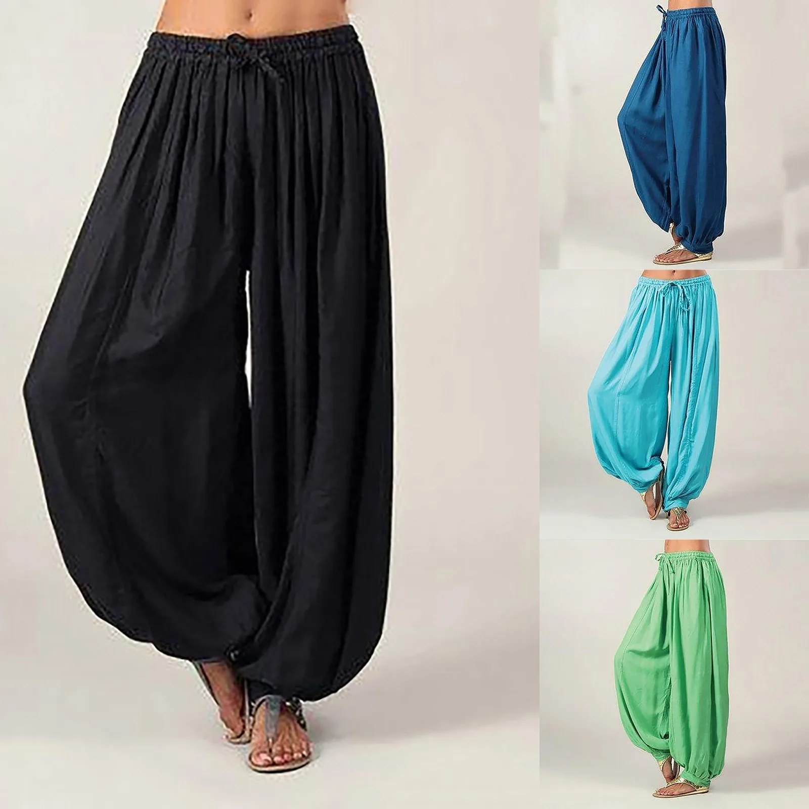 Женские свободные шаровары в европейском и американском стиле, однотонные, повседневные, спортивные, размера плюс