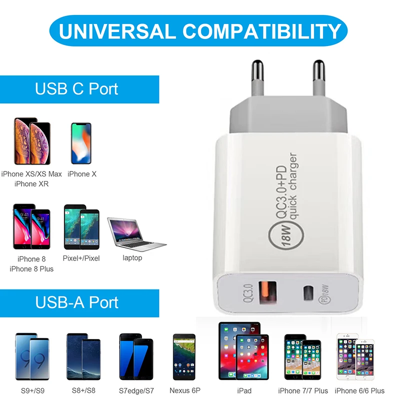 18 Вт Dual USB C PD зарядное устройство быстрое зарядное устройство QC 3,0 USB зарядное устройство для iPhone 11 Pro X Huawei Samsung Xiaomi зарядное устройство USB кабель с разъемом