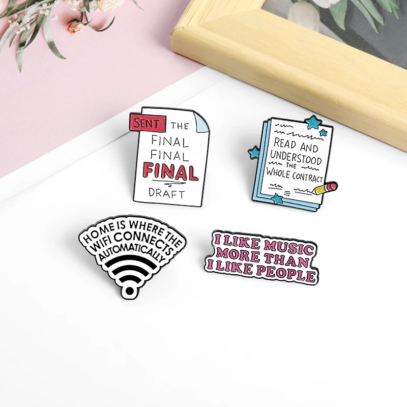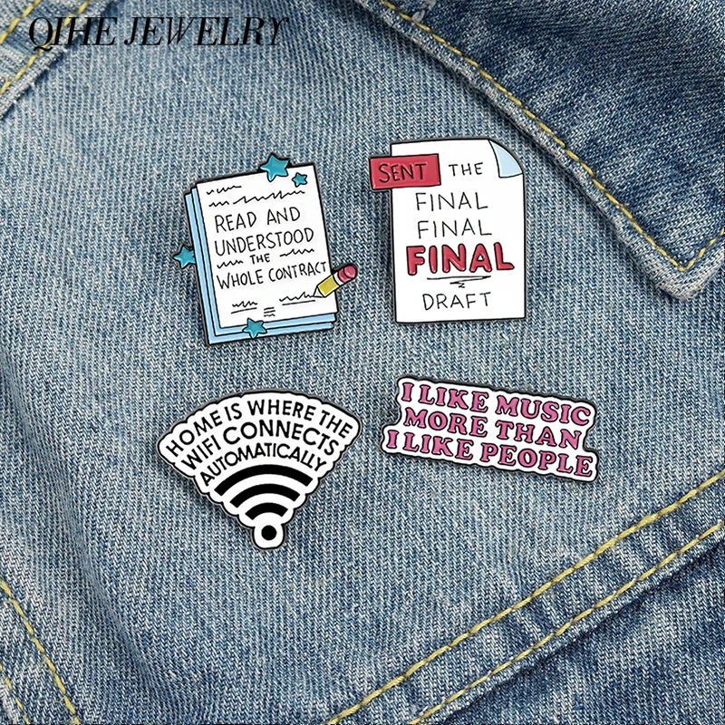 Эмалированные булавки с цитатами, музыка, Wi-Fi, чтение компьютерных файлов, забавные буквы, булавка на лацкан, аксессуары для джинсов