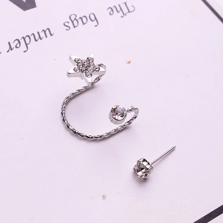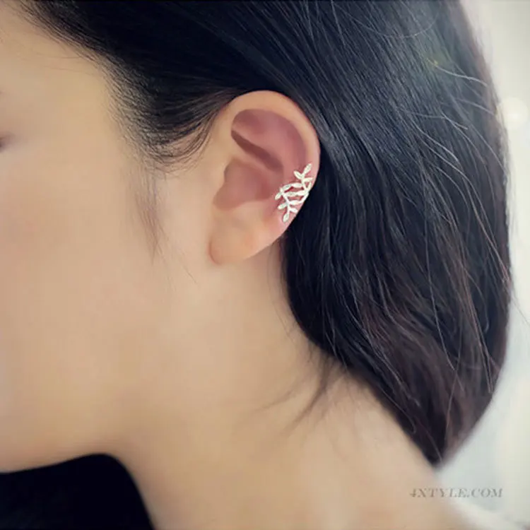Клипса-кафф с цирконом женская, Очаровательная серьга-клипса золотистого цвета с декором листья, без пирсинга, ювелирное изделие, кристалл в форме звезды, 1 шт.