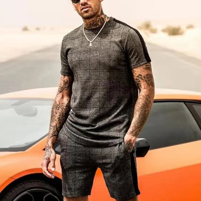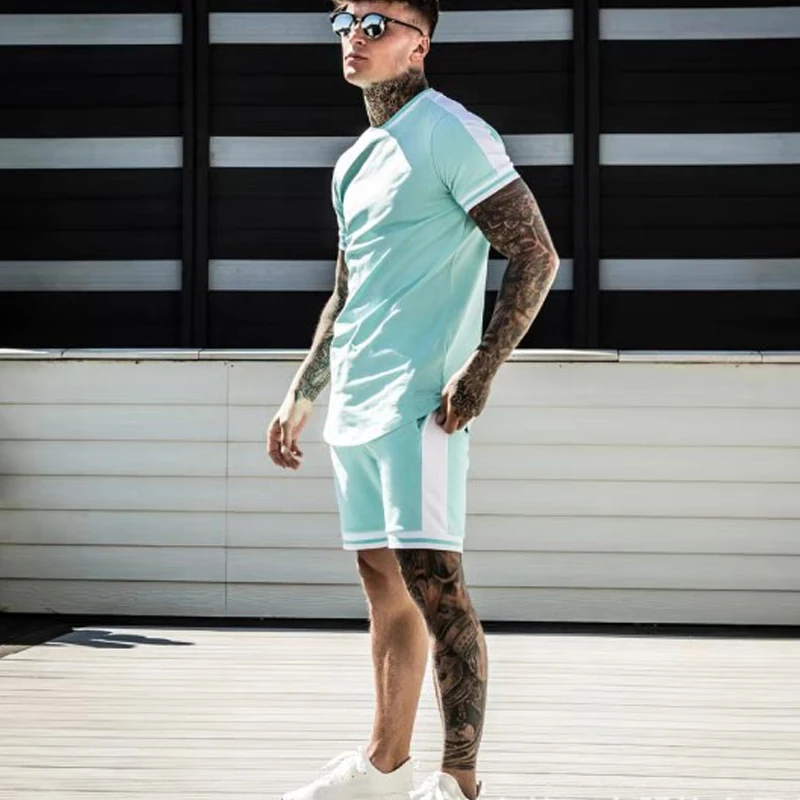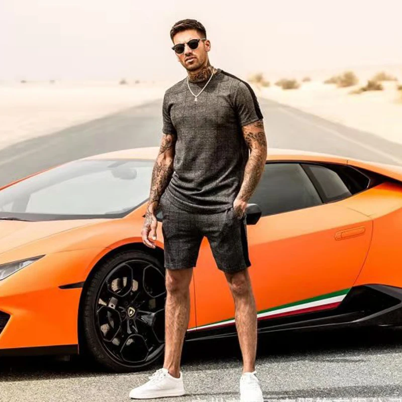 Повседневная спортивная одежда, мужской комплект для бега, спортивные костюмы для фитнеса, Мужская футболка с коротким рукавом + спортивные шорты, быстросохнущая одежда из 2 предметов