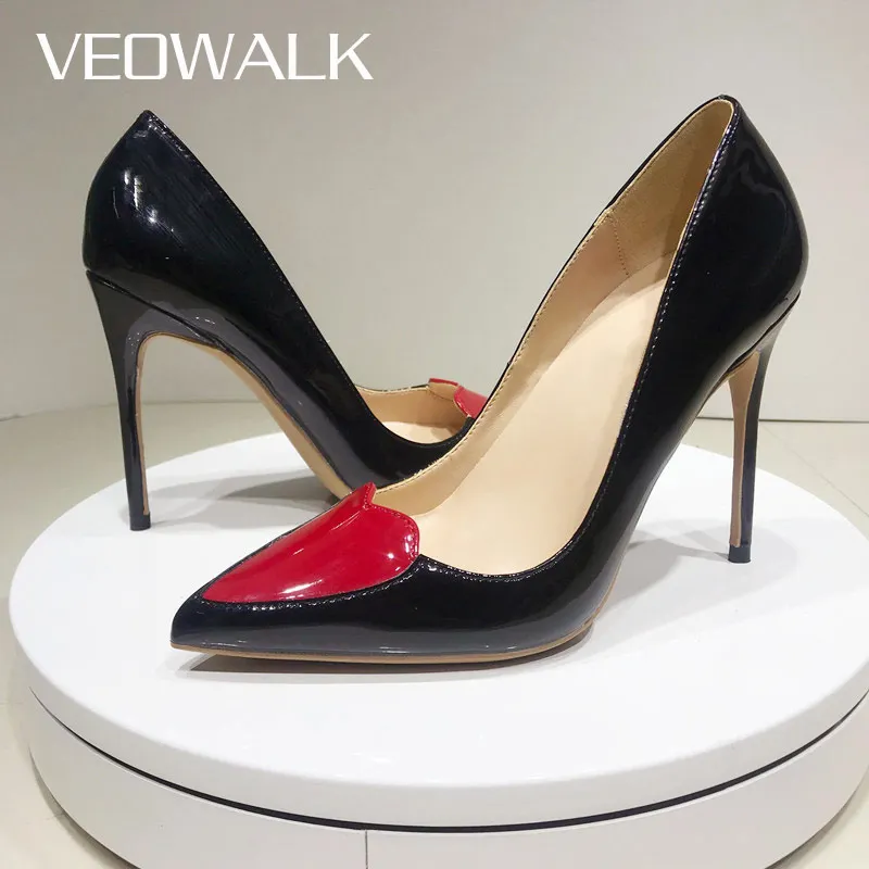 Женские лакированные туфли Veowalk, туфли-лодочки с острым носком на высоком каблуке 8 см, 10 см, 12 см, 33-45
