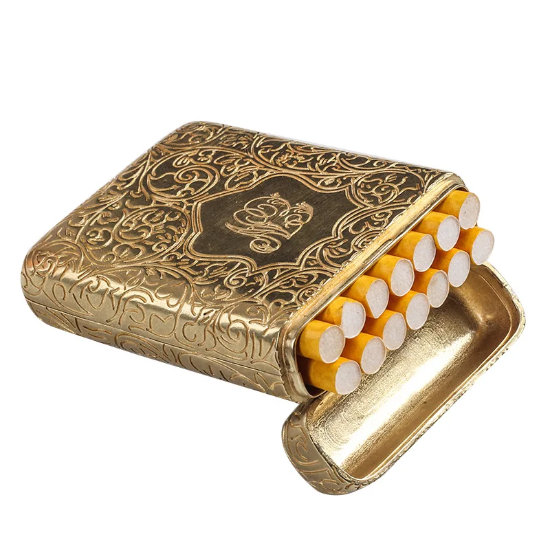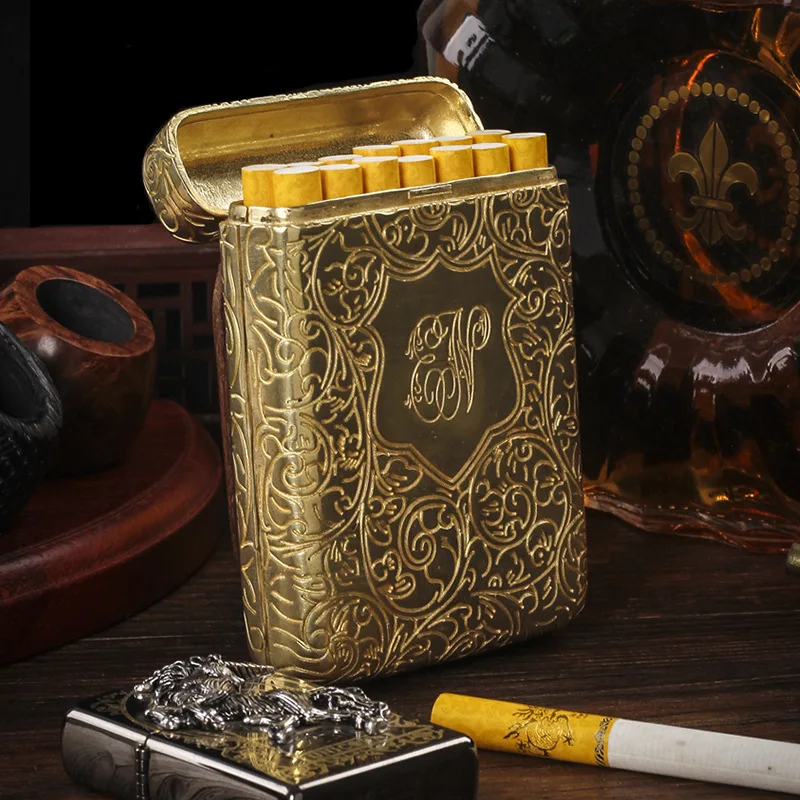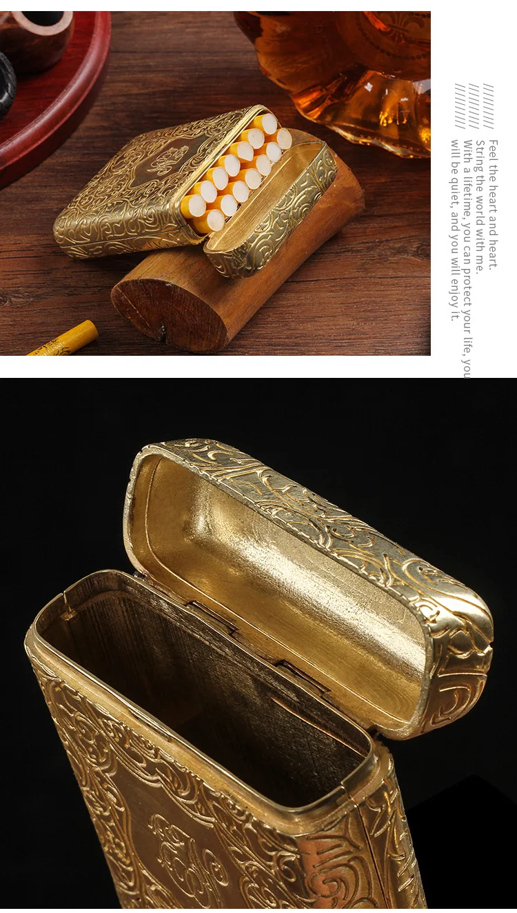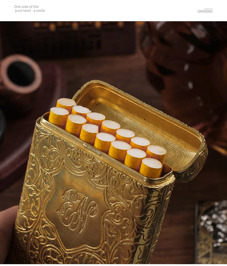 Роскошный винтажный резной футляр для сигарет, чехол, латунный футляр для табака, карманный футляр для хранения, может вместить 14 толстых сигарет
