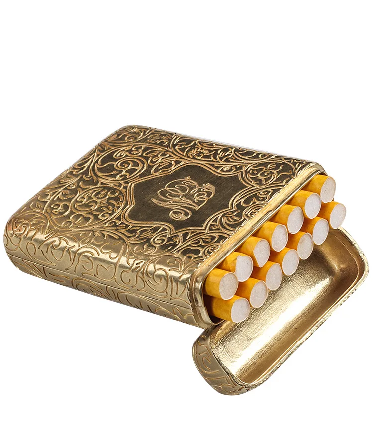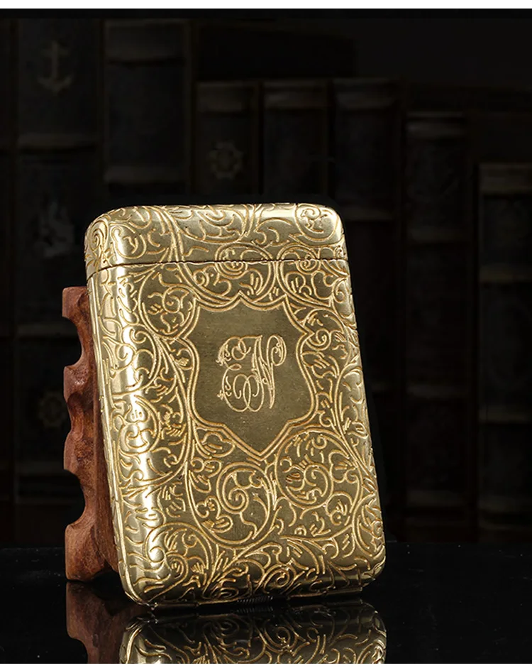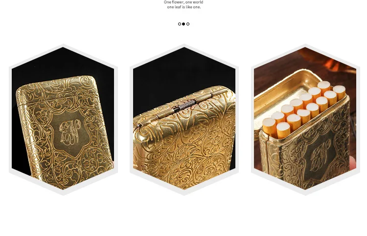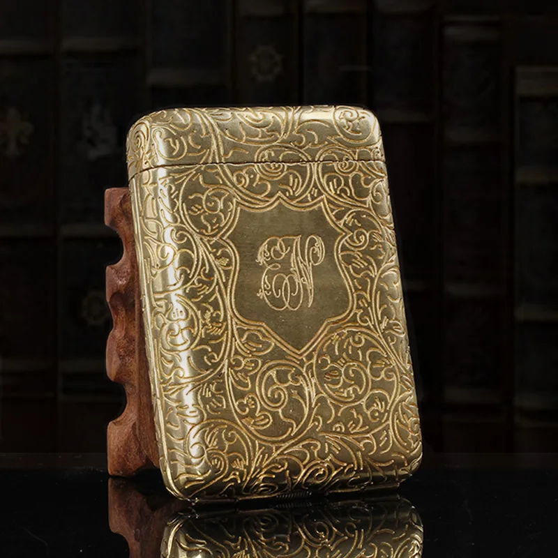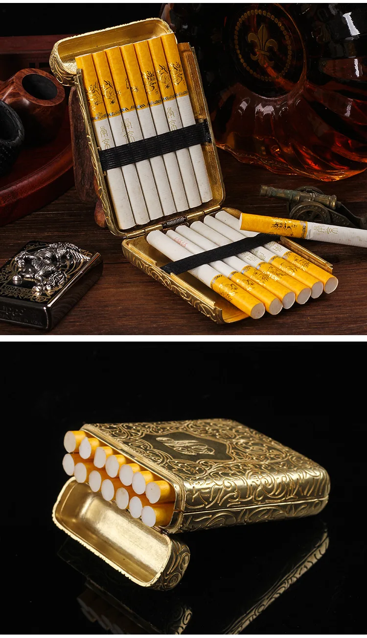 Роскошный винтажный резной футляр для сигарет, чехол, латунный футляр для табака, карманный футляр для хранения, может вместить 14 толстых сигарет