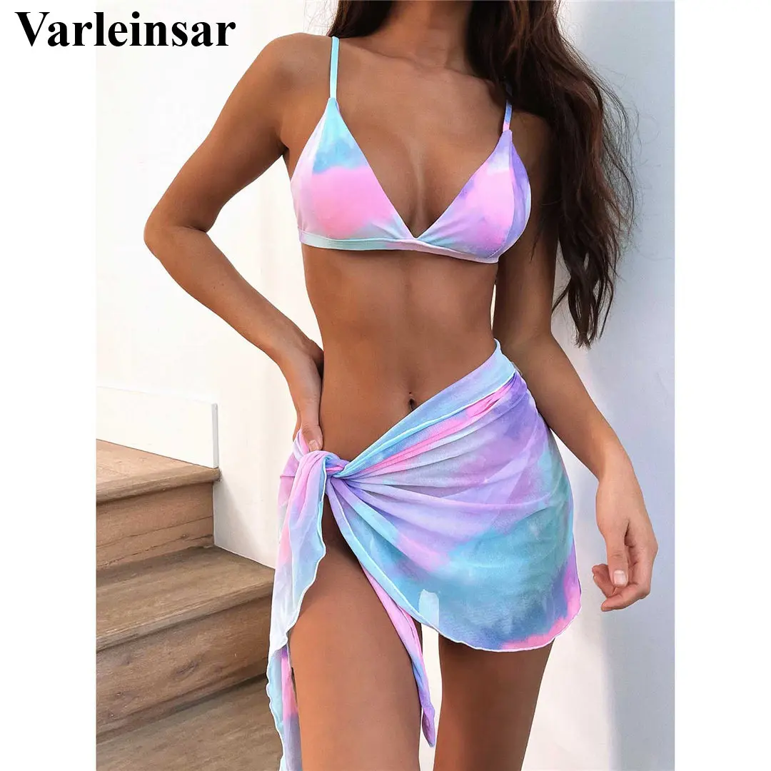 Женский купальник из трех частей, комплект бикини с юбкой и лямкой ...