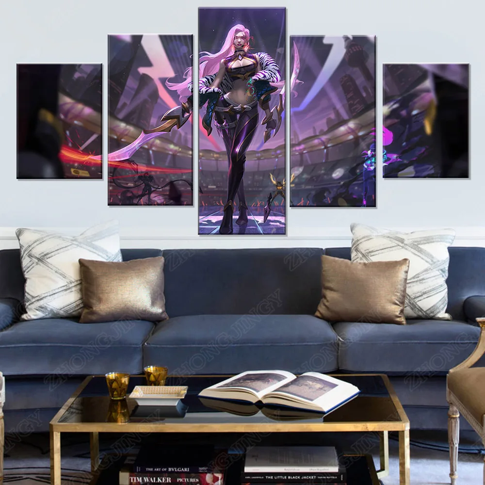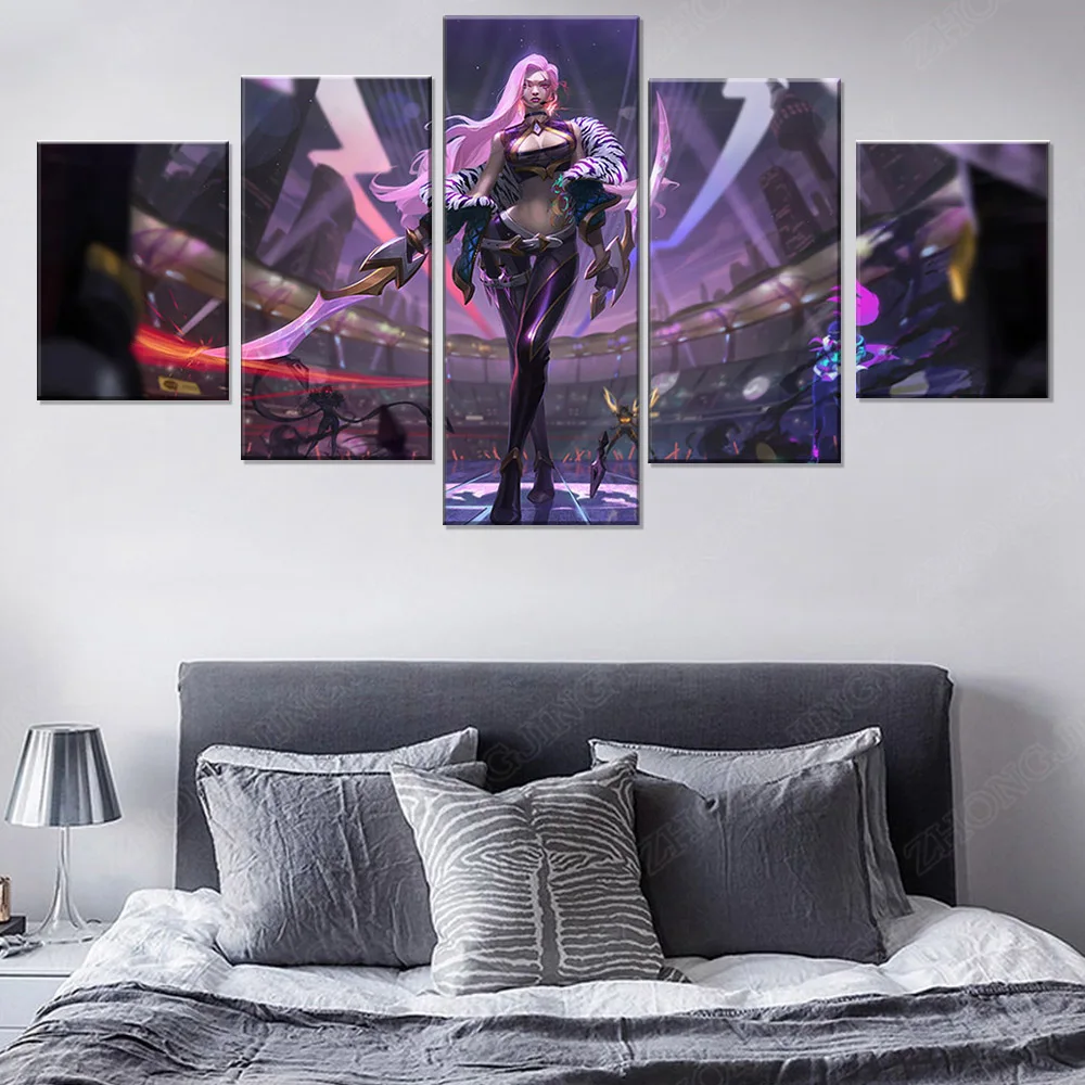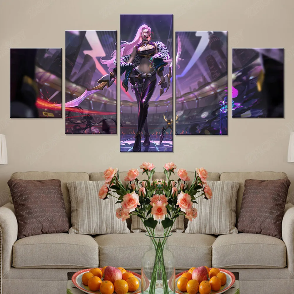 Домашний декор, настенная живопись, современные холсты, 5 панелей, Лига Легенд, KDA Катарина, картина для видеоигр, Hd-принты, плакат в рамке